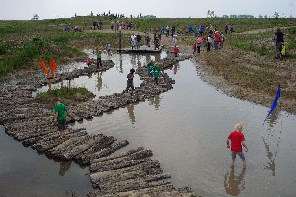 Na de opening renden de kinderen alle kanten op. Sommigen nog wat voorzichtig, anderen plonsden gelijk het water in. De één ging met zeewier aan de haal, terwijl een ander over de boomstammen liep die over het water lag. Of ze sprongen vanaf de boomstammen het water in. Binnen een minuut waren er dan ook al veel kinderen nat en vies. Sommige kinderen deden wel heel erg hun best om zo vies mogelijk te worden. Verder genoten de kinderen van de heuvels, kruiptunnels, knuppelbruggen, uitkijkpunt, een tobbe waar kinderen in konden varen en er was zelfs een vlot aanwezig. Er stond één ding voorop; Vies worden mag! En daar maakten de kinderen dan ook gretig gebruik van.
