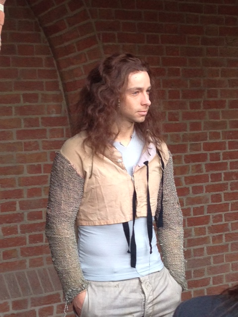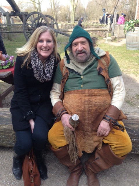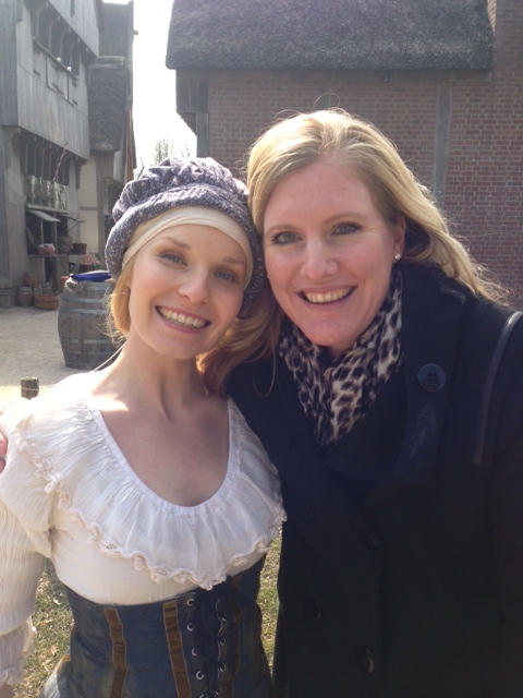 Na een kort ontvangst in de ruimte voor de figuranten (welke overigens allemaal gecast zijn en niet de personages zijn die in het Archeon werken), krijgen we de mogelijkheid om zowel Ridder Tobias als jonkvrouw Myrthe op de foto te zetten. Ze zien er geweldig uit in hun middeleeuwse kostuum en een vreemd soort vlinders maken zich meester in mijn buik nu ik de personen die ieder ochtend mijn woonkamer vullen in het echt voor me zie staan. Na dit fotomoment kunnen we de set op. Fantastisch! Wat ziet iedereen er mooi uit en wat een perfecte setting voor een middeleeuws decor. In verschillende winkeltjes zie je ambachten terugkomen als manden vlechten, zwaarden maken en brood bakken. Er lopen ridders, jonkvrouwen en Noormannen waar je ook kijkt. Verschillende scenes worden eerst gerepeteerd en vervolgens opgenomen. Zowel de bekende personages als de figuranten zijn vriendelijk en enthousiast en je kunt zien dat ze, ondanks de snijdende kou, plezier hebben in wat ze doen.