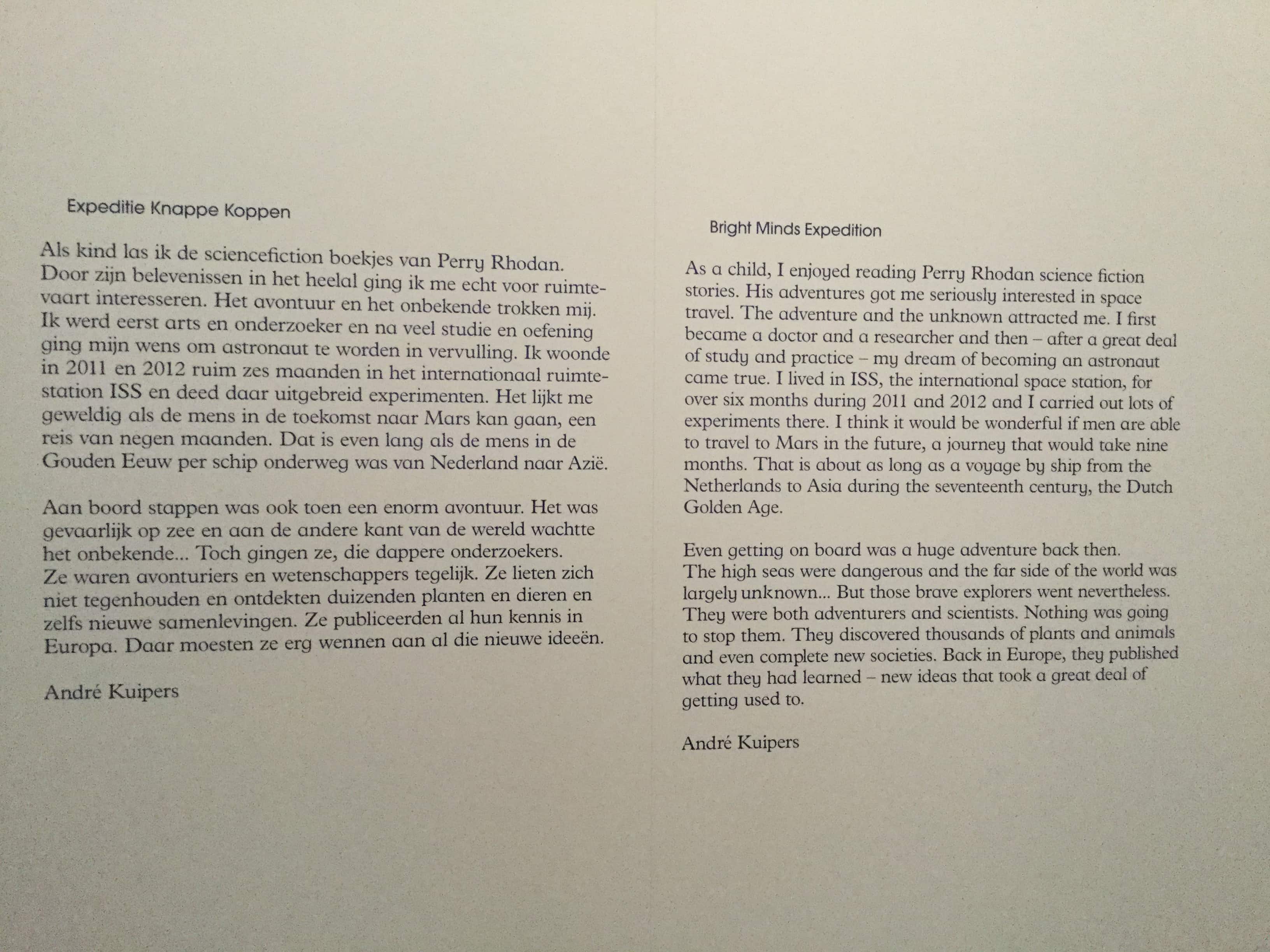 Na het beantwoorden van de vragen was er uiteraard gelegenheid om de tentoonstelling ‘Expeditie Knappe Koppen’ te gaan zien, maar voordat we daar toe kwamen bestormden we eerst Nienke & André voor handtekeningen en selfies. Het laat zien dat de prestaties van André Kuipers echt indruk heeft gemaakt en nu zich nu de rol van held van Nederland mag aanmeten.