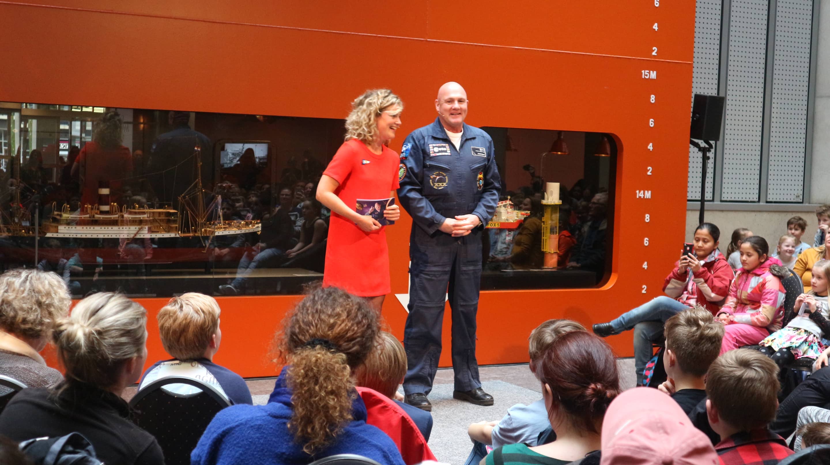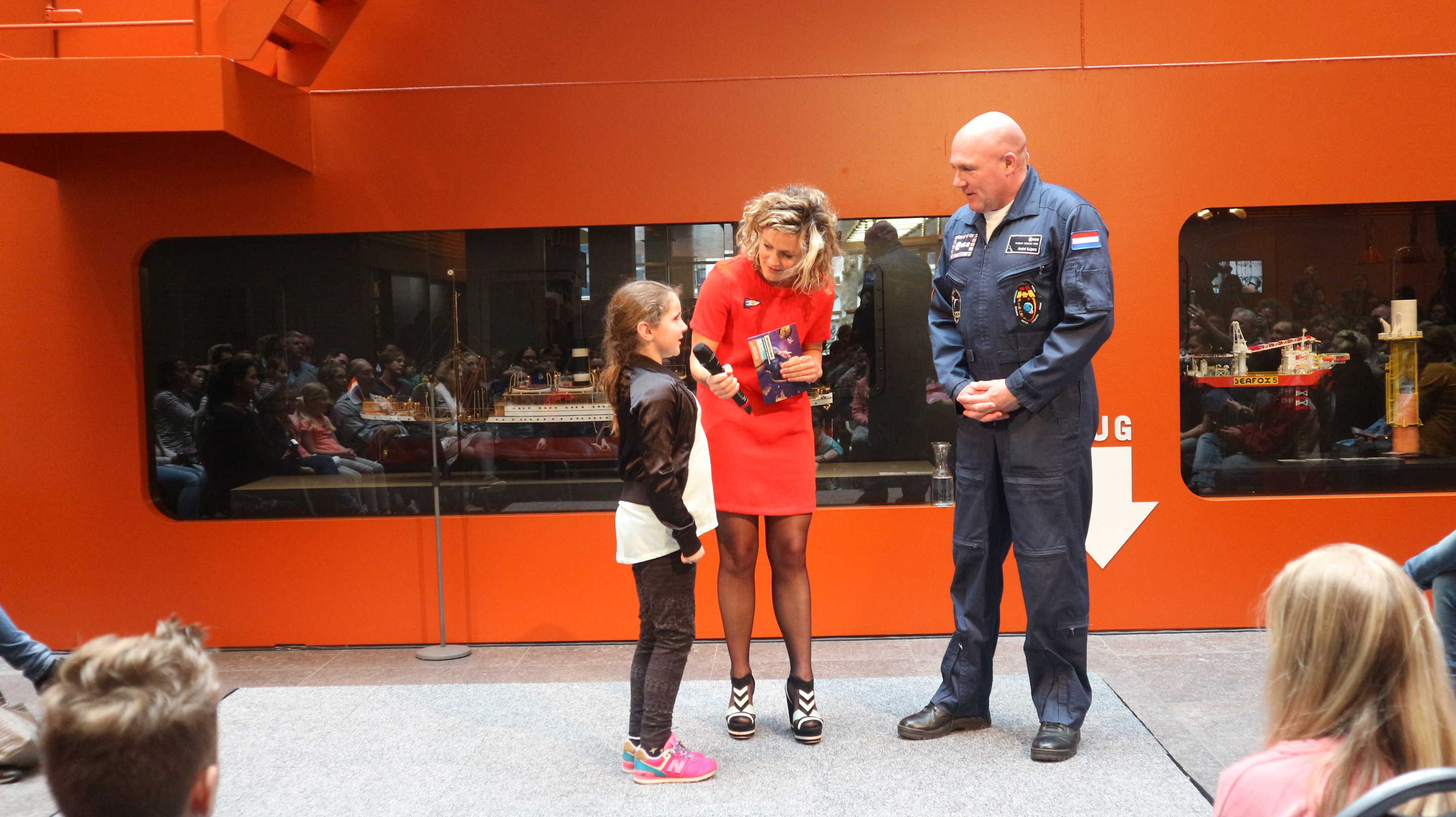 Onder de uitstekende leiding van Nienke de La Rive Box, en gezien de reacties van het jeugdige publiek ook zeer populaire presentatrice van o.a. Klokhuis, werd een selectie van de schriftelijk ingediende vragen aan André Kuipers gesteld, die de vragen dan meestal als kapstok gebruikte om inderdaad over heel verschillende onderwerpen van de ruimtevaart een college te geven.