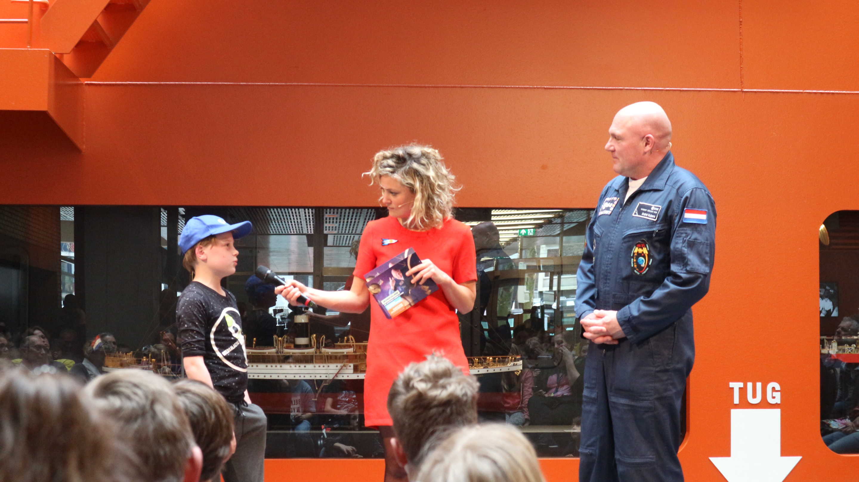 De vragen waren bijvoorbeeld: “Wat heb je het meeste gemist op je ruimtereis: op bed liggen of in de bank zitten?”, of “Kun je vanuit de Ruimte iets van de luchtvervuiling op aarde zien?”, of “Waarom is de ruimte zwart?”, en “Zou je ook ontdekkingsreiziger hebben willen zijn?”, “Heb je dingen in de ruimte gezien die niet te verklaren zijn?”en “Gaan we ooit op een andere planet wonen?”. Hier een impressie van de vragenstellers: