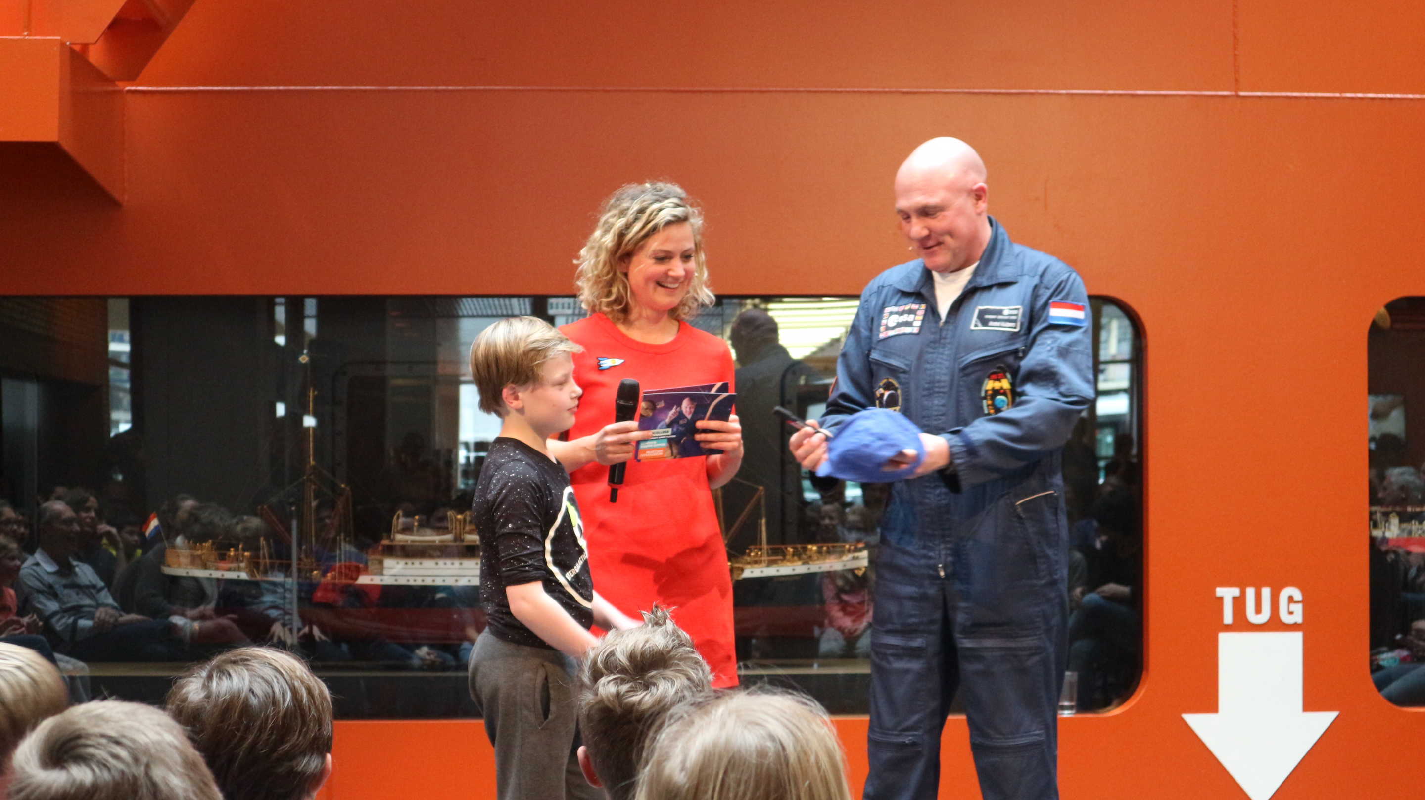 Het is dus een uitstekend idee om juist deze nationale held, André Kuipers, de tentoonstelling ‘Expeditie Knappe Koppen’ in het Martiem Museum te laten openen met een jeugd-college.