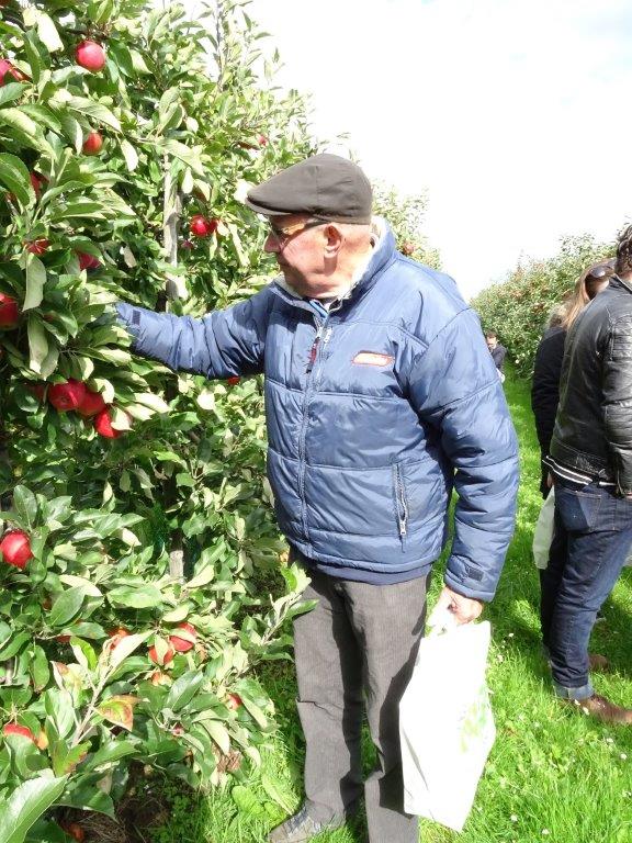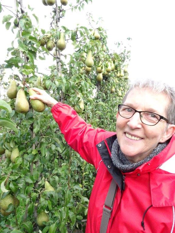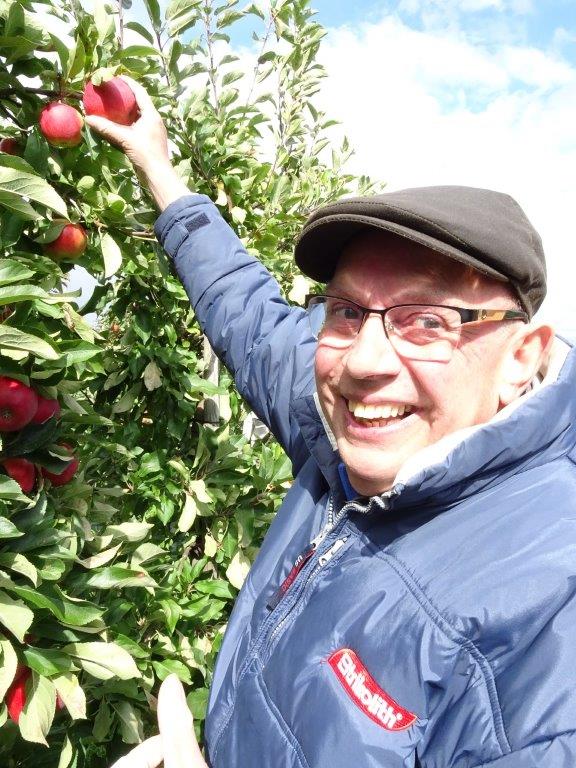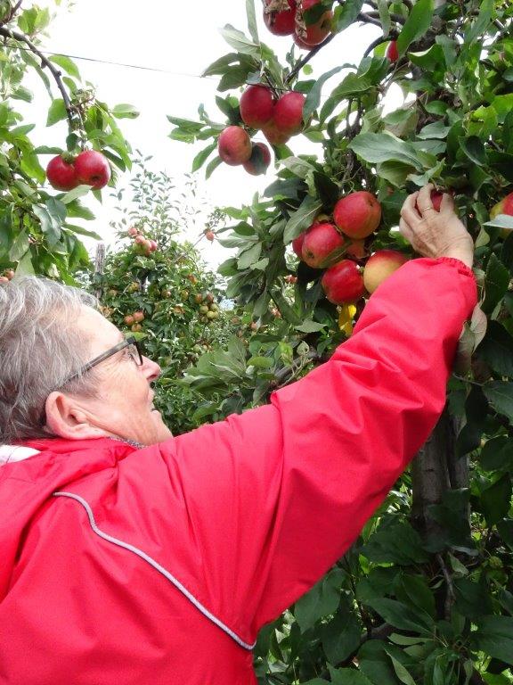 Ik had nog nooit appels geplukt, was nooit binnen zo,n bedrijf geweest, en verheugde me er enorm op. Samen met mijn man en zwager gingen we er heen. We werden allereerst vriendelijk ontvangen met eigen appelsap en de kok had diverse heerlijke hapjes, waarin, uiteraard, appel en peer verwerkt was.