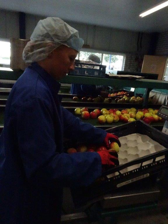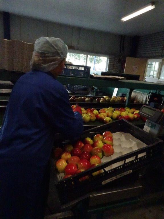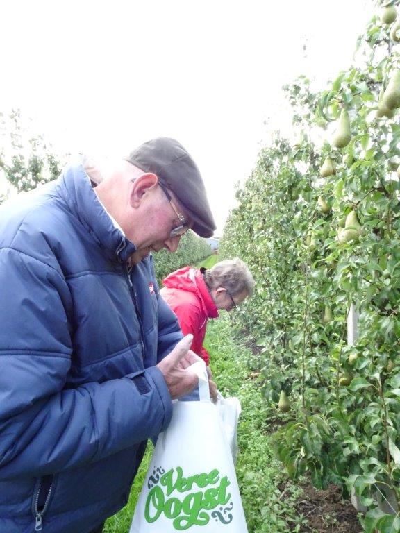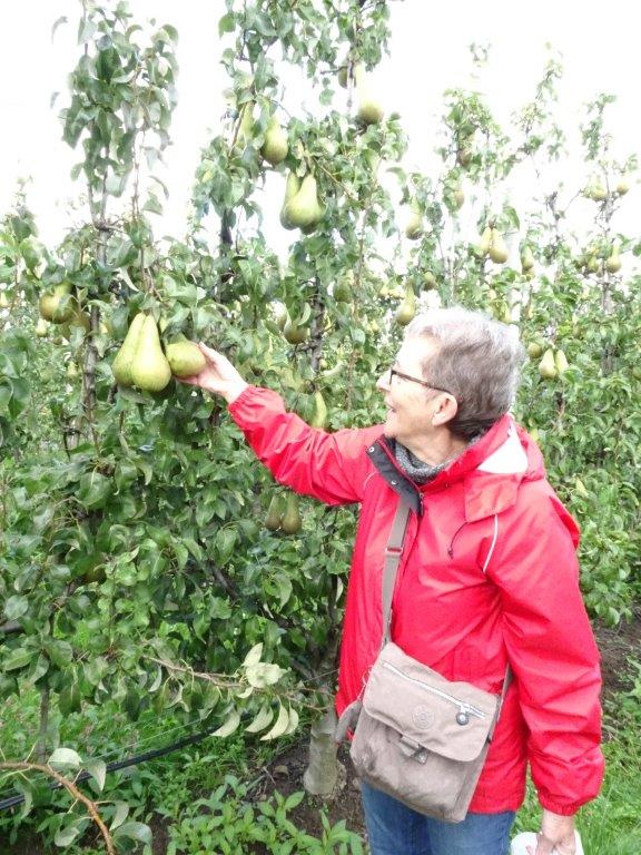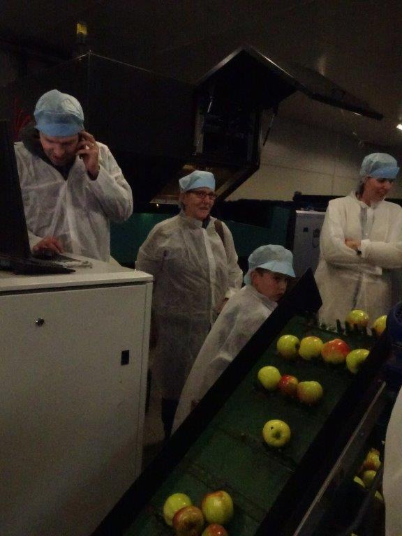 Daarna mochten we peren plukken. De “Conference” een heerlijke peer. Dit jaar zijn ze erg groot van omvang, zelfs soms indrukwekkend. Terug op het bedrijf kregen we een rondleiding door een zoon. Net als zijn vader was hij niet minder enthousiast. We zagen de koelcellen, de route die de appel aflegt voordat hij in het bestemde kistje zit.