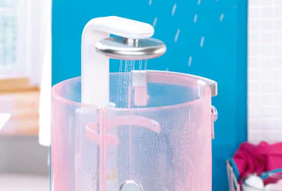 Onder de douche gaan, is net als tanden poetsen: het gaat allemaal ten koste van waardevolle speeltijd. Maar hygiëne is belangrijk en als je een douche hebt zoals deze, is het zelfs superleuk! BABY born® en haar zus passen perfect onder de verstelbare douchekop.