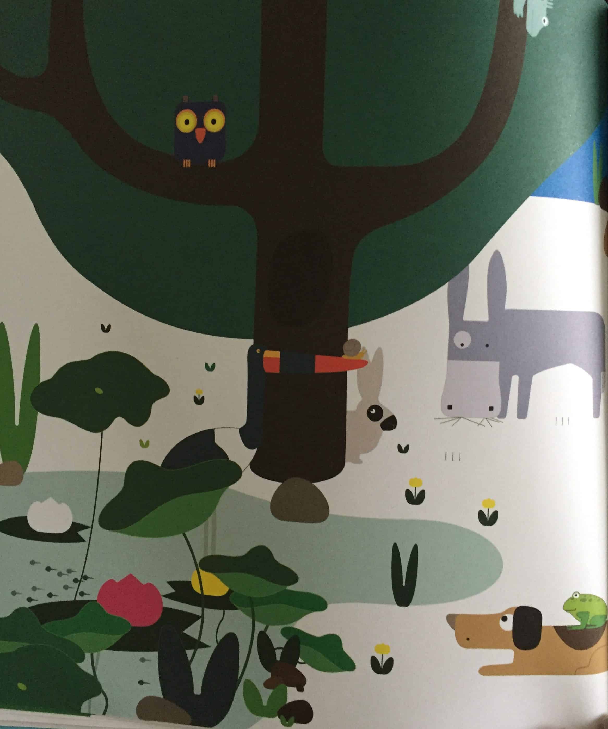 Toegegeven: het is een prachtig vormgegeven boek in een beetje een geometrische stijl die mij persoonlijk erg aanspreekt. Het enige nadeel is dat de teksten soms lastig leesbaar zijn doordat ze op een donkere/meerkleurige achtergrond staan. Afgezien daarvan is het een prachtig (voorlees)boek voor peuters en kleuters.