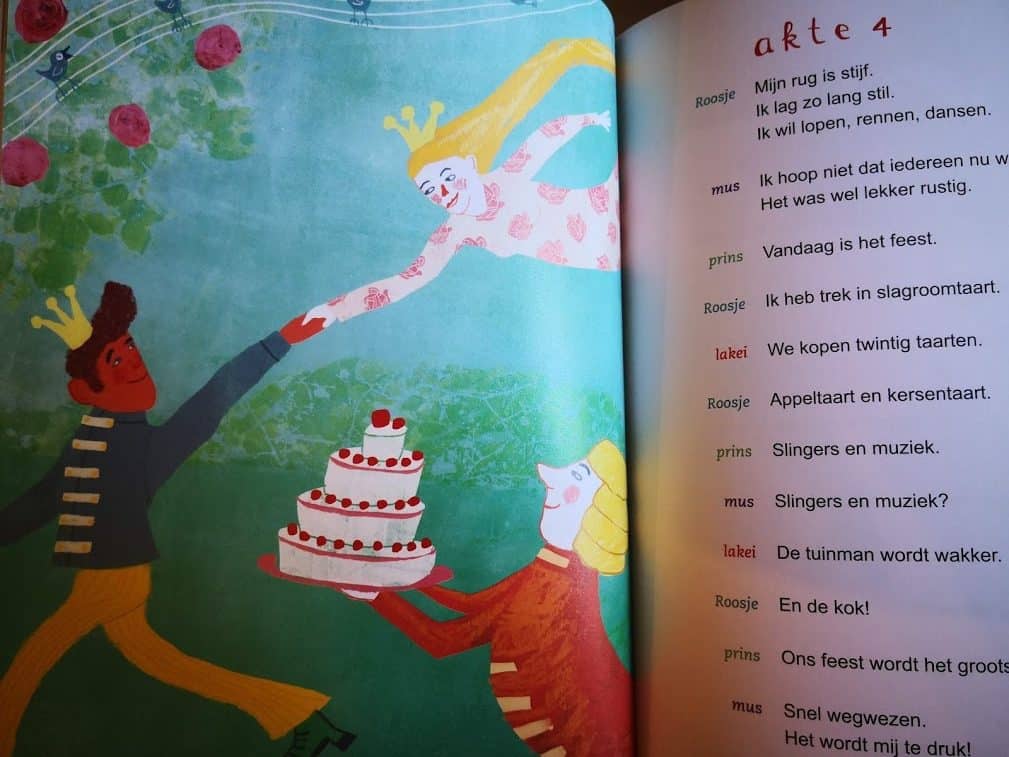 Door ieder een rol te nemen, ben je echt samen bezig met een sprookje. Zelf moest ik wel wennen aan het ‘onaf’ zijn van de verhalen. Gelukkig zijn het voor mij bekende sprookjes en is het al leuk om een deel te lezen. Met mijn dochter heb ik geprobeerd een alternatief eind aan een sprookje te maken, gewoon door allebei in onze ‘rol’ te blijven en een vervolg te verzinnen. Dat was erg leuk!
