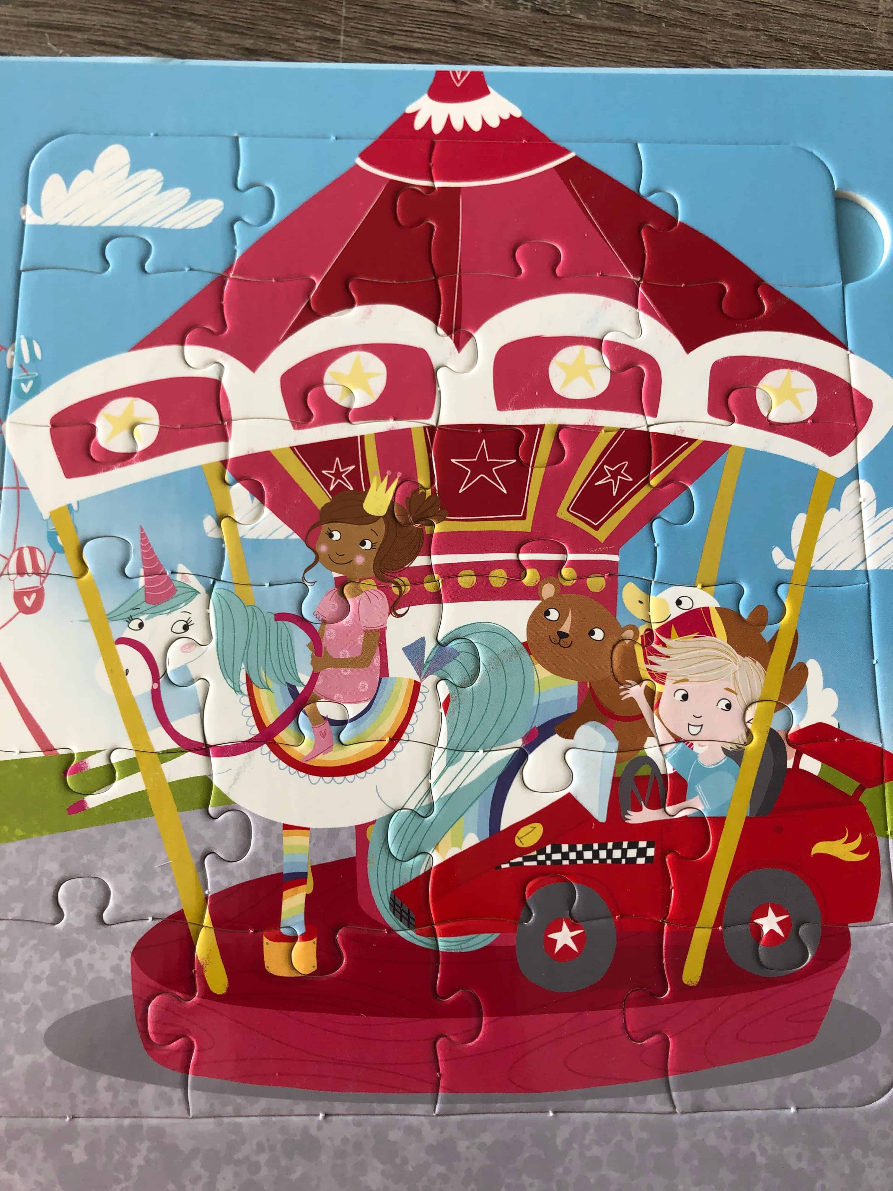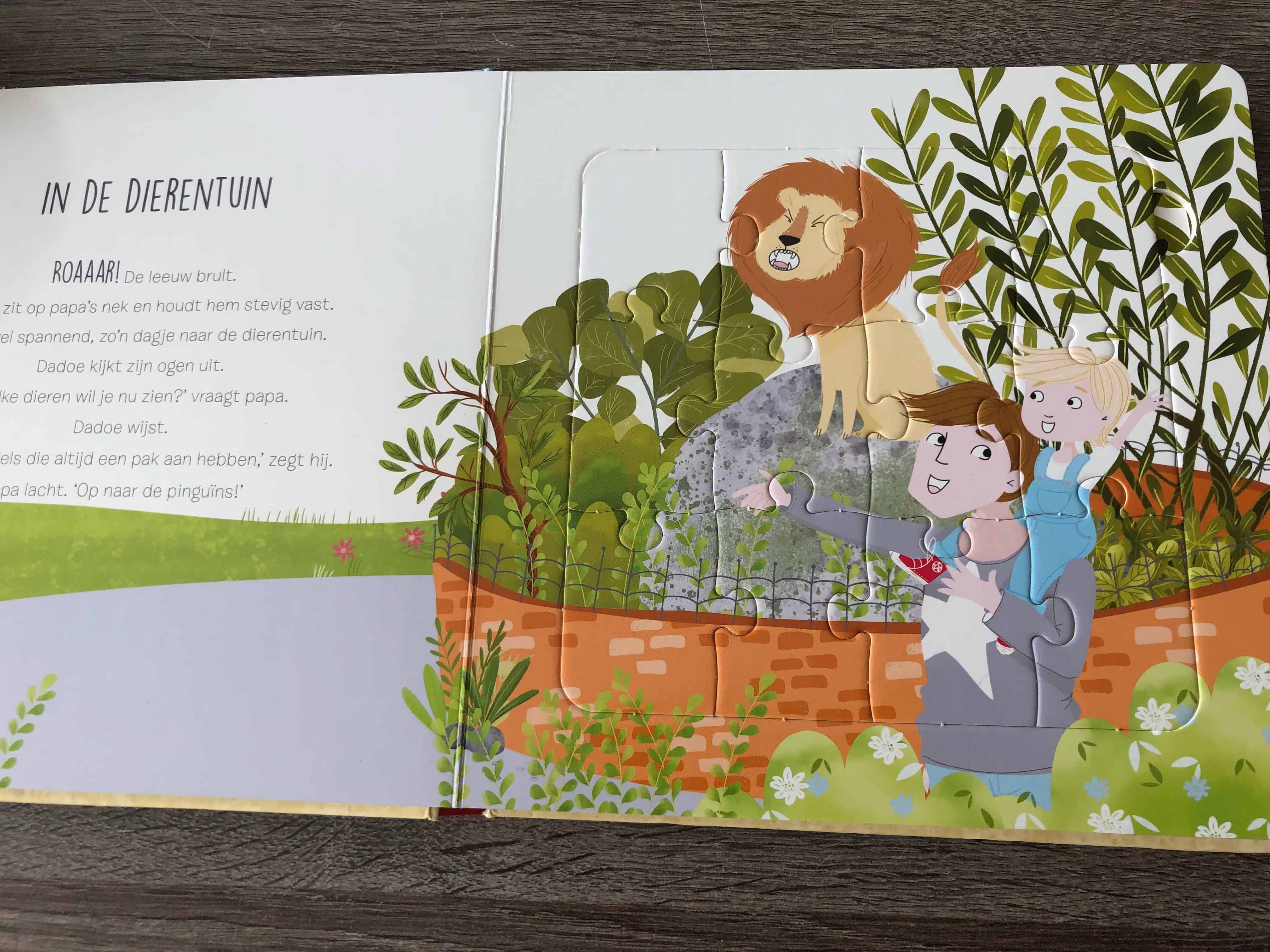 De puzzels zijn echter het eerste waar het kind naar kijkt, dus voor een jonge peuter is het vrij lastig voor te lezen. Hij wil immers eerst de puzzels maken, want die zijn het meest interessant. Zodra die nieuwigheid eraf is, wordt het makkelijker om de twee activiteiten (lezen en puzzelen) van elkaar te scheiden.