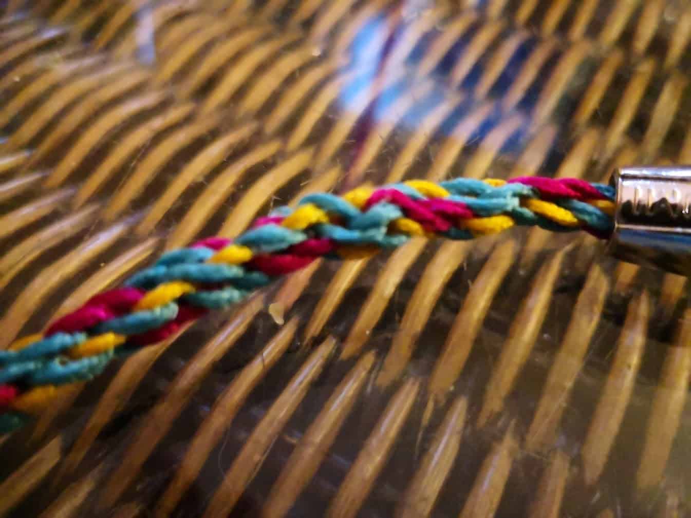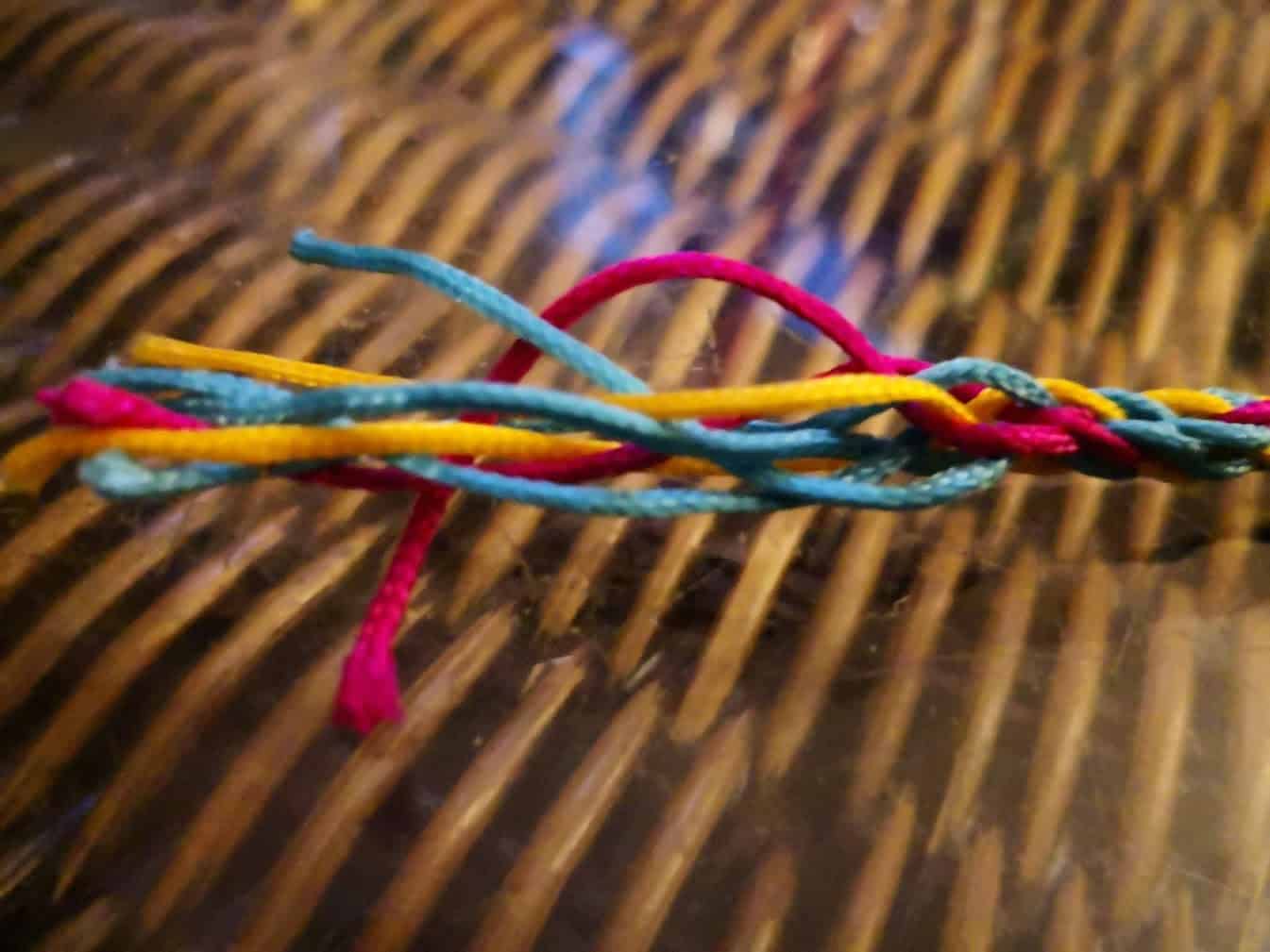 Door aan een schrijf te draaien, vlecht de Kumi Kreator de verschillende draden door elkaar. Het resultaat is een vrolijk en stevige armband, die je zelf af moet maken door de eindjes vast te maken met een plakrandje en er een sluiting aan te maken.