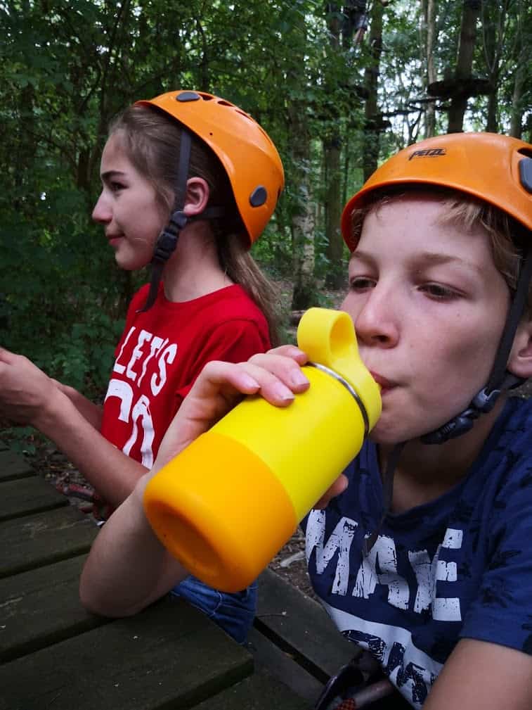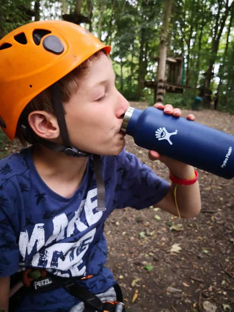 Ter bespreking krijg ik twee Hydro Flask flessen: een grote (voor mij) en een kleinere met een rietje (voor de kinderen). Mijn zoon roept meteen dat hij mijn drinkfles wil, want hij is al er groot en hoeft echt niet meer met een rietje… Wanneer we echter een dagje in het bos zijn, en tussendoor wat drinken, is hij vooral opgelucht dat hij met een rietje kan drinken. Geen gedoe met wespen en ander vliegend spul!