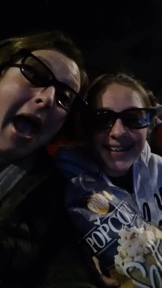 En toen gingen we één van de bioscoopzalen in waar de film gedraaid werd, zochten een mooi plekje uit en namen de zak popcorn die klaar stond in de stoel op ons schoot. We waren er klaar voor…