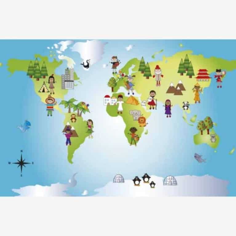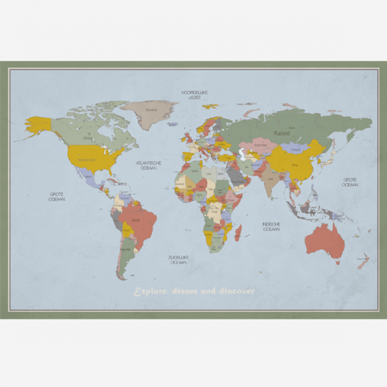 Zelf kan ik eindeloos kijken naar wereldkaarten. Om te zien welke landen er zijn, waar bergen en rivieren zich bevinden, waar ik geweest ben en waar ik nog naar toe wil. Door een wereldkaart in huis te halen, heb je niet alleen iets moois aan de muur, maar ook iets leerzaams. Voor iedere leeftijd zijn passende kaarten, kijk maar mee: