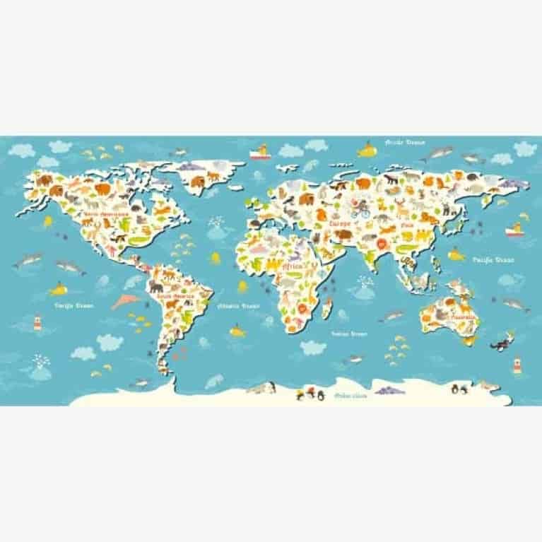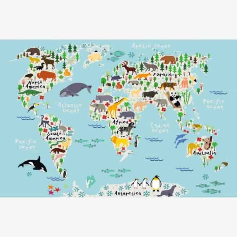 Dieren zijn altijd leuk om naar te kijken. Met onderstaande wereldkaarten met dieren, zal je kind lang kijkplezier hebben.