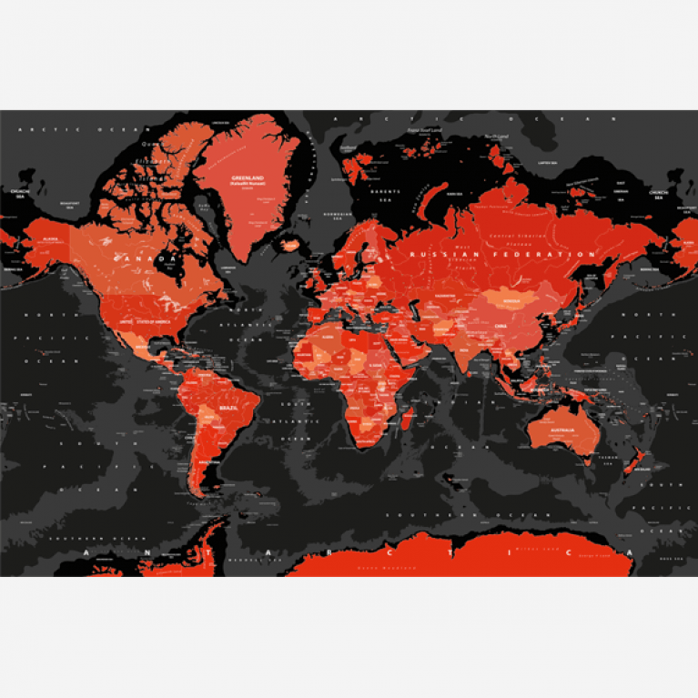 Pubers krijgen aardrijkskunde, de opvolger van wereldoriëntatie, op school. Een klassieke wereldkaart is dan erg handig, maar wanneer dat te veel op ‘school’ lijkt, kun je ook een stoere kaart in rood en zwart kiezen natuurlijk.