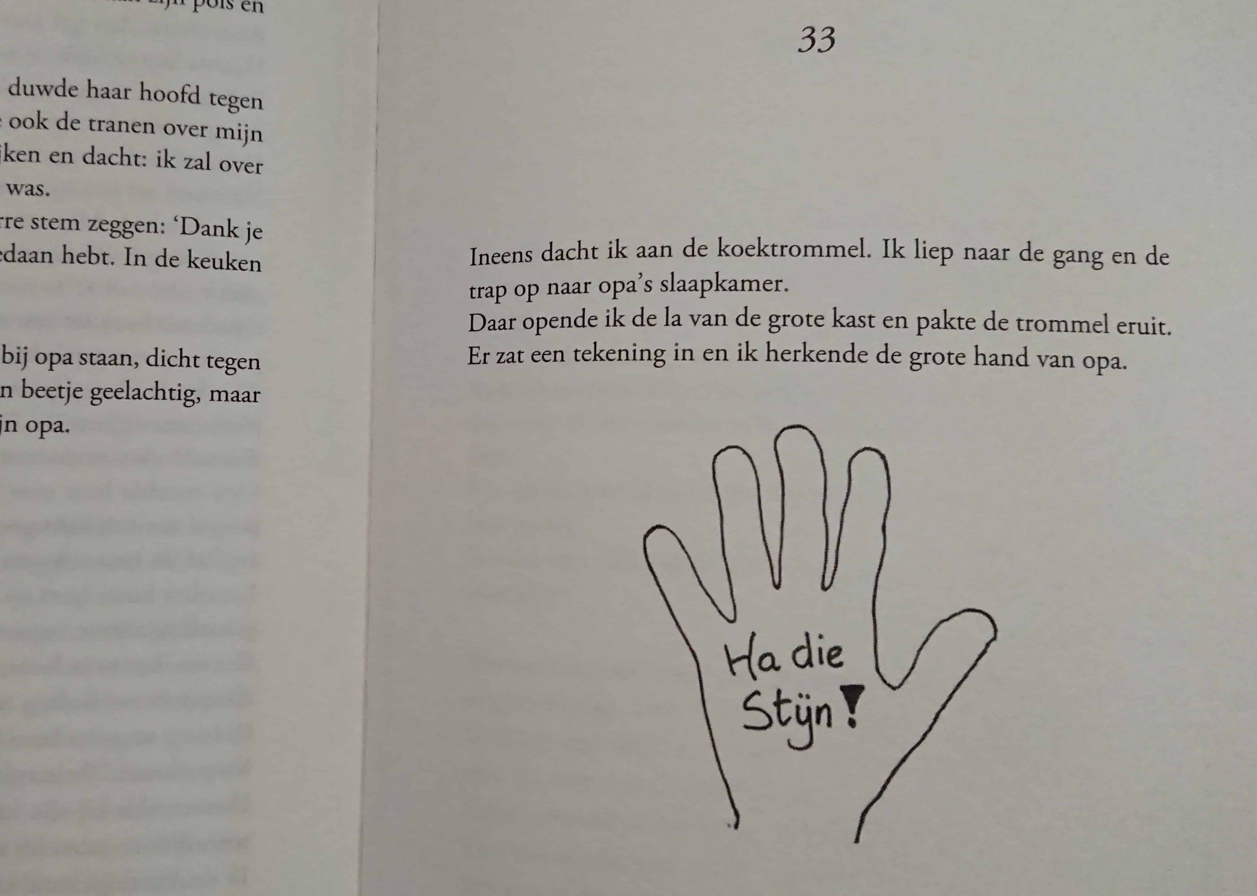 Het verhaal is vrolijk en blij geschreven, maar daardoor is de ondertoon en de ernst van de situatie voor de lezer des te duidelijker. Stijn heeft een prachtige Opa, die er voor zorgt dat het afscheid ooit minder verdrietig wordt.