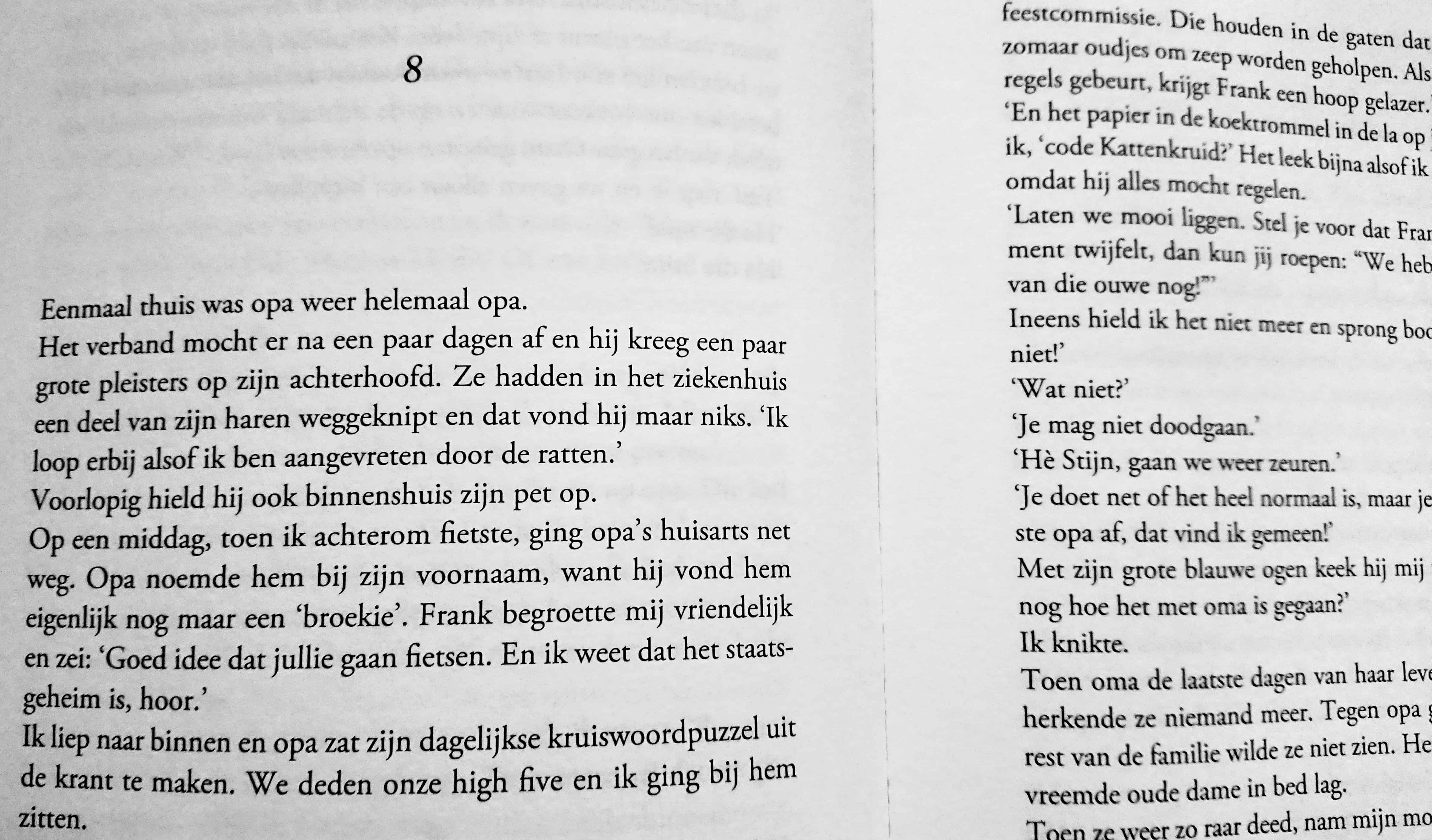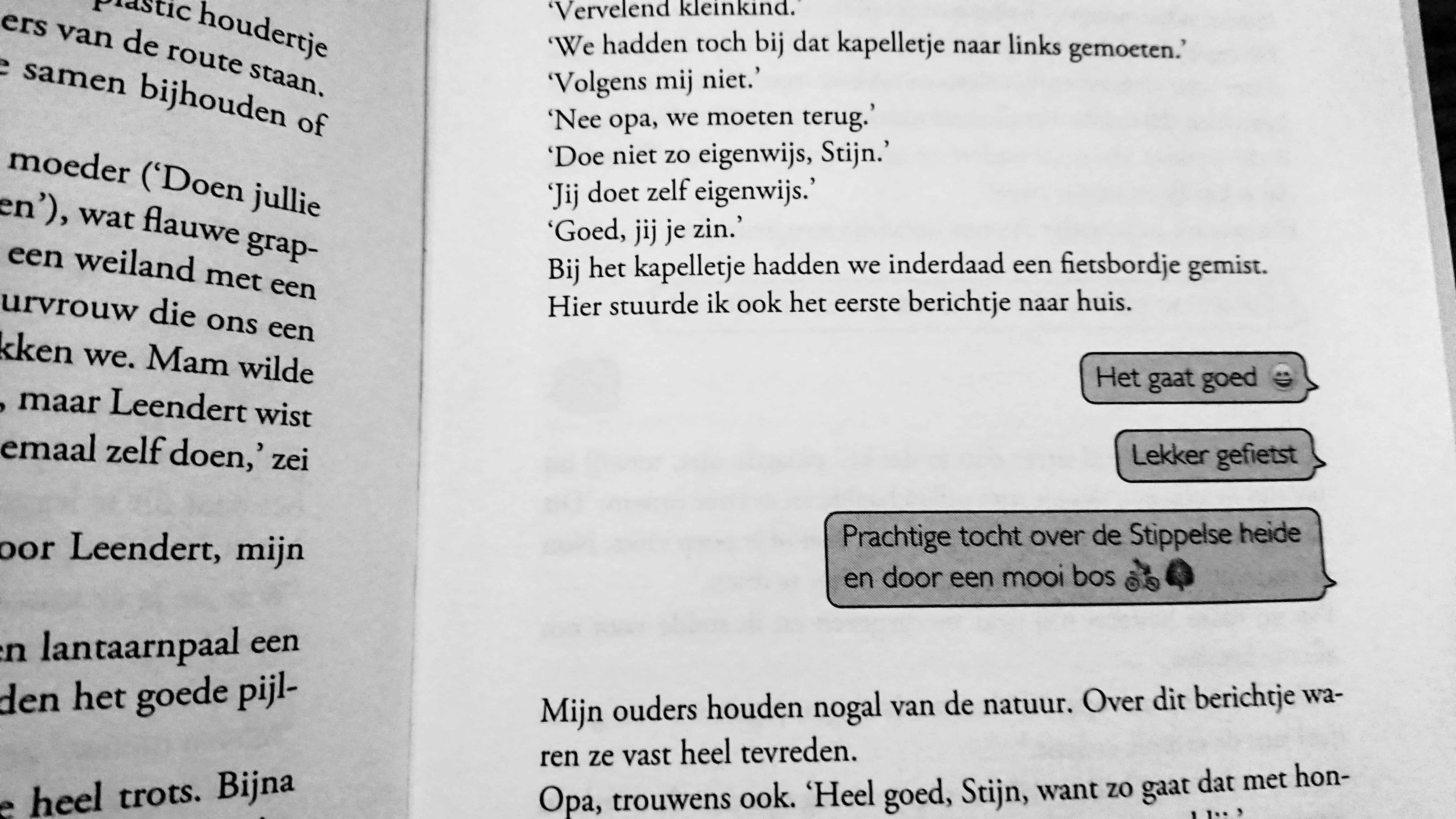 Deze fietstocht is eigenlijk wel een hoogtepunt in het boek, maar zeker ook in het leven van Stijn. Opa vertelt van alles aan hem, heel veel dingen die hij nog niet wist, maar dat gebeurd ook omgekeerd. Stijn is ook getuige van het ziek-zijn van zijn Opa.