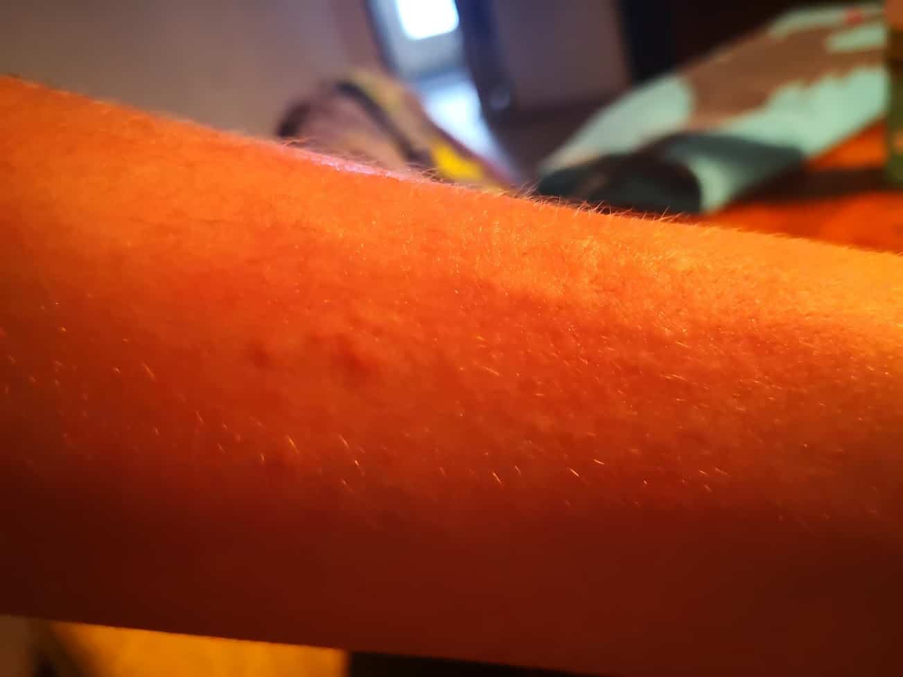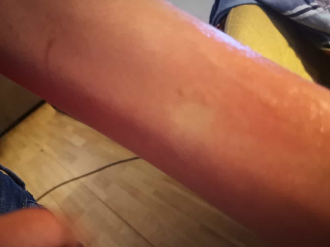 Toen we het Curaloe product toegestuurd kregen (verkrijgbaar bij ETOS en via Bol) hadden we het geluk even geen contact te hebben gehad met muggen of eikenprocessierupsen. Maar om het te testen was dat niet handig…. Helaas had nog geen dag later mijn dochter allerlei bultjes op haar onderarm, na een wandeling met de honden. De haartjes van de eikenprocessierups zorgden weer voor een geïrriteerde huid en nare jeuk.