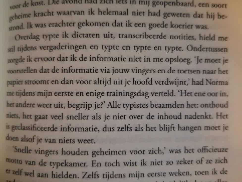 In het boek wordt ingezoomd op een aantal levens. Het boek wisselt hoofdstukken af, die te lezen zijn vanuit een aantal hoofdpersonages. In de Sovjet Unie volgen we Olga Ivinskaya, de minnares van Boris Pasternak. In de VS volgen we Irina en Sally, twee typistes bij de CIA (die meer gaan doen dan alleen typen…). En er zijn hoofdstukken vanuit een agent en vanuit de typisten. De hoofdstukken zijn duidelijk ingedeeld in tijd.