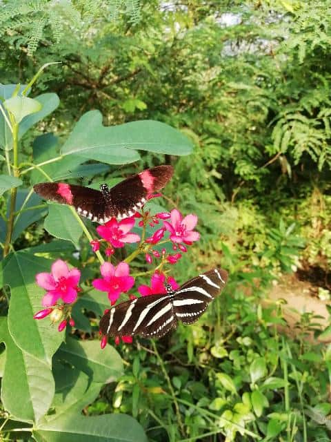 Als je het pad tussen de mangroven door volgt kom je bij een grote glazen wand waar je weer een blik kunt werpen in de zeekoeienkreek. Zo kan je naast de zeekoeien ook de vele verschillende soorten vissen bewonderen die daar rondzwemmen. Maar niet alleen voor en beneden je valt te genieten van de flora en fauna, ook boven je dartelt het rond. Want de Mangrovehal is ook een prachtige vlindertuin waar kinderen met een zoekkaart kunnen proberen zoveel mogelijk verschillende soorten vlinders te ontdekken. Het zijn twintig soorten, maar om die allemaal te vinden, ben je wel even bezig.