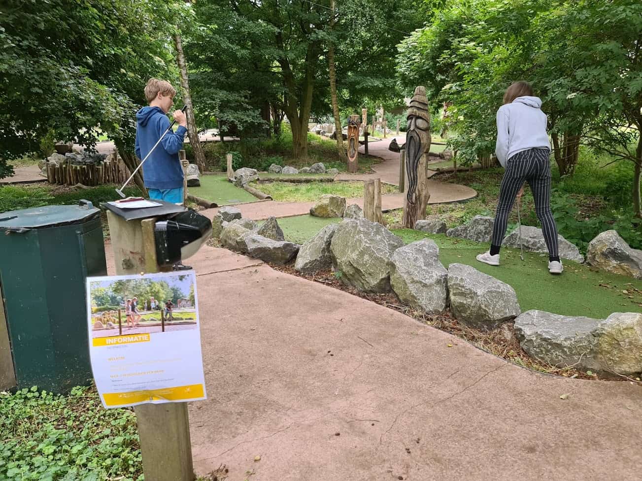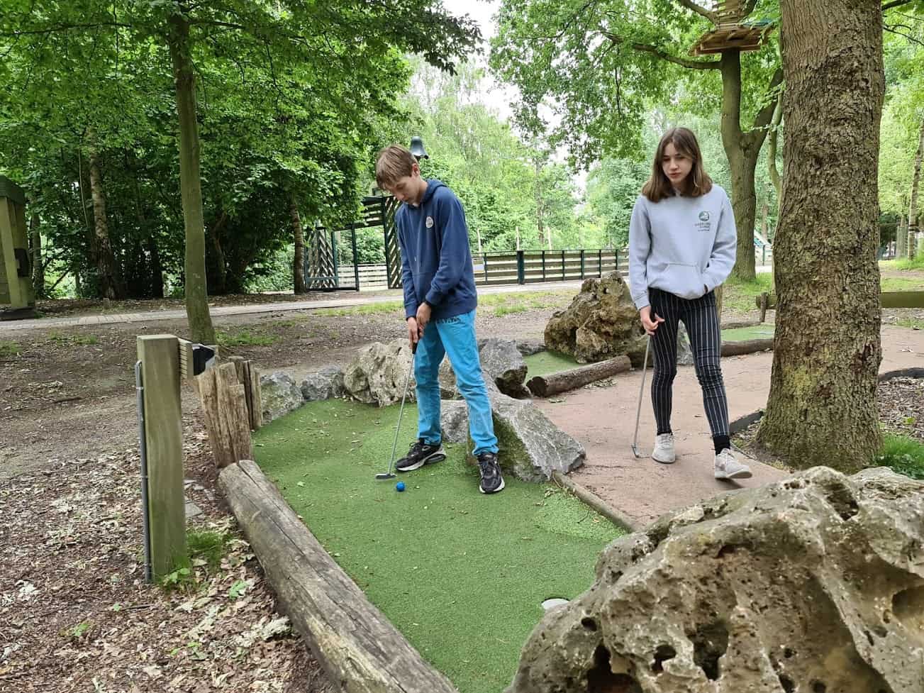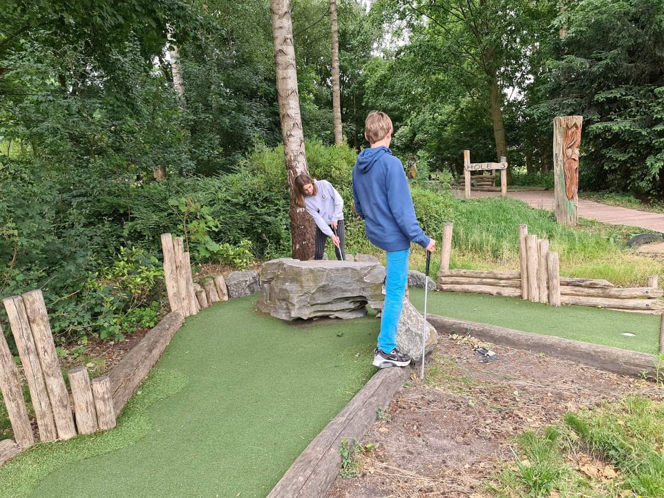 We zijn onder andere Adventure Golf gaan doen. Midget golf, maar dan op avontuurlijke buitenbanen die grotendeels uit natuurlijke materialen bestonden. Ook daarvoor hadden we een tijdvak gereserveerd zodat het lekker rustig was.
