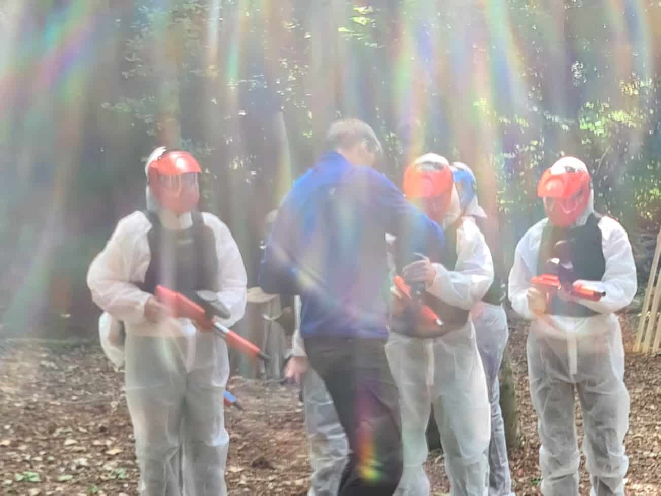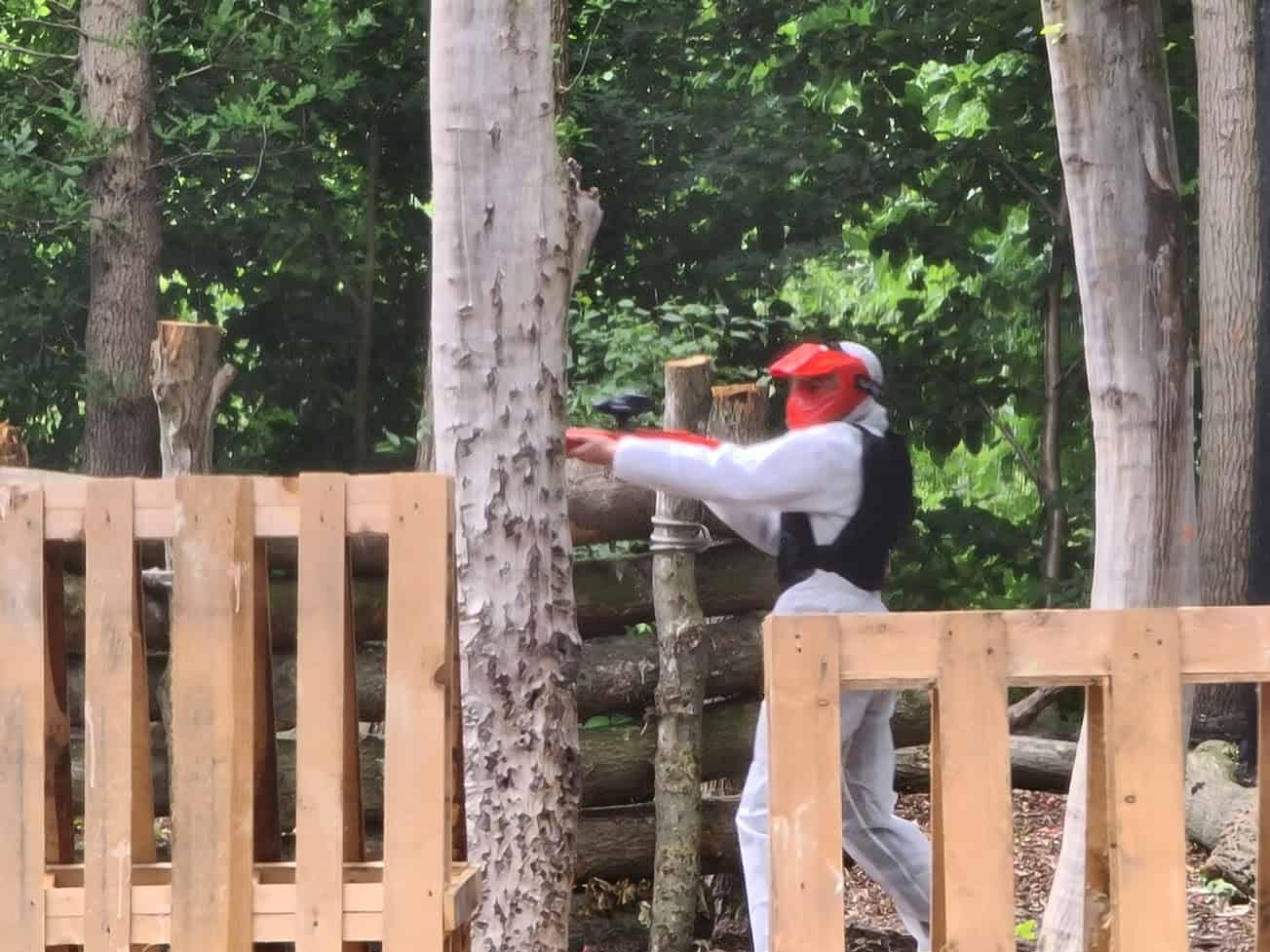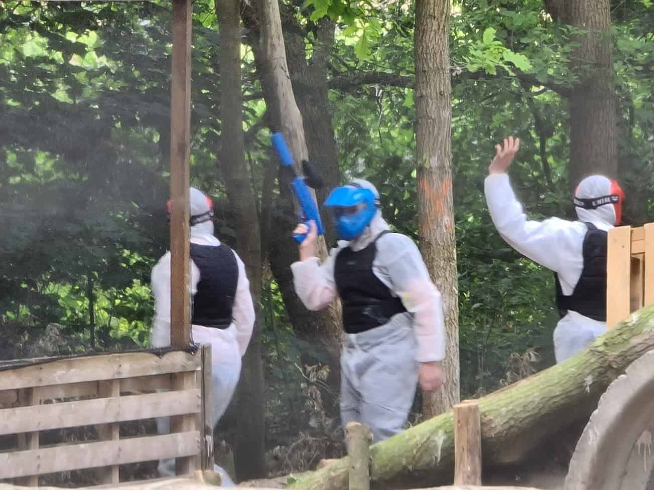 We zijn ook paintball gaan doen. En deze Trotse Moeder heeft mee gedaan met de tweeling. En ik vond het echt superleuk, enorm intensief en gezellig! De bedoeling is om een aantal ‘missies’ uit te voeren waarbij je probeert om anderen te raken en zelf niet geraakt te worden. Het ‘raken’ bestaat uit een klein verfballetje wat tegen je overall kapot gaat. Aan de verfspat kun je zien dat het raak was.