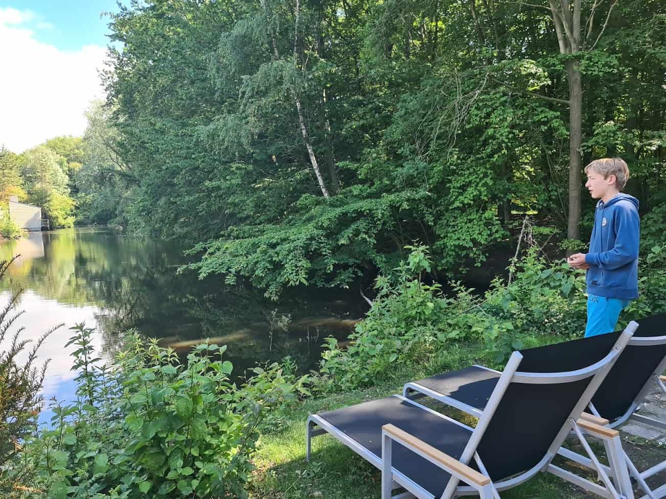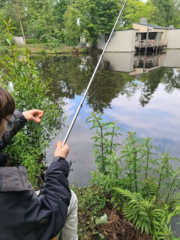 De oudste heeft een dag gevist, gewoon vanuit de achtertuin. Ook dat was zeer geslaagd hoewel hij meer dobbers heeft achtergelaten, verstrikt in een waterplant, dan vissen heeft gevangen 😉
