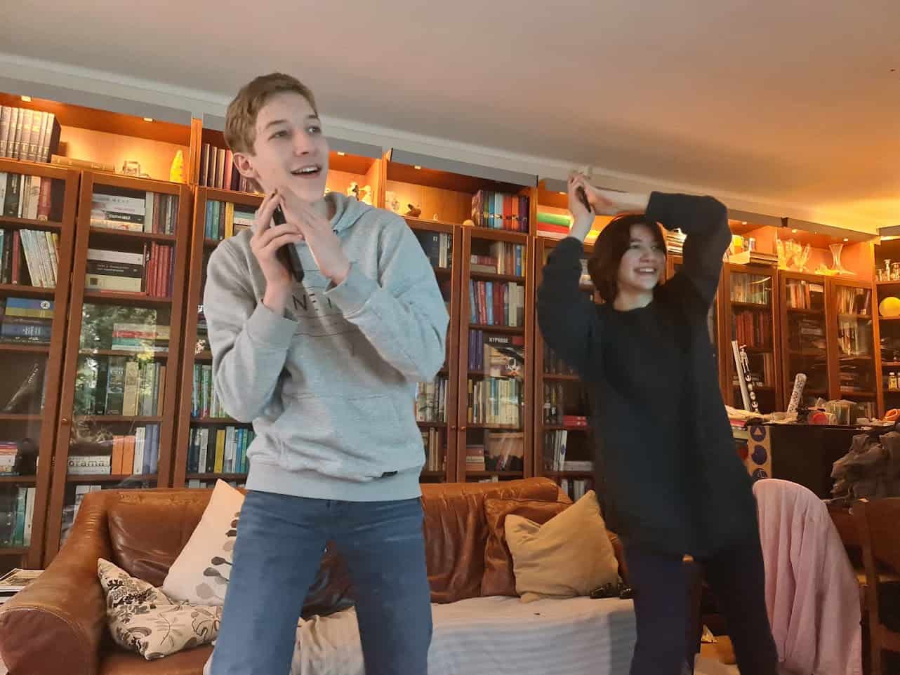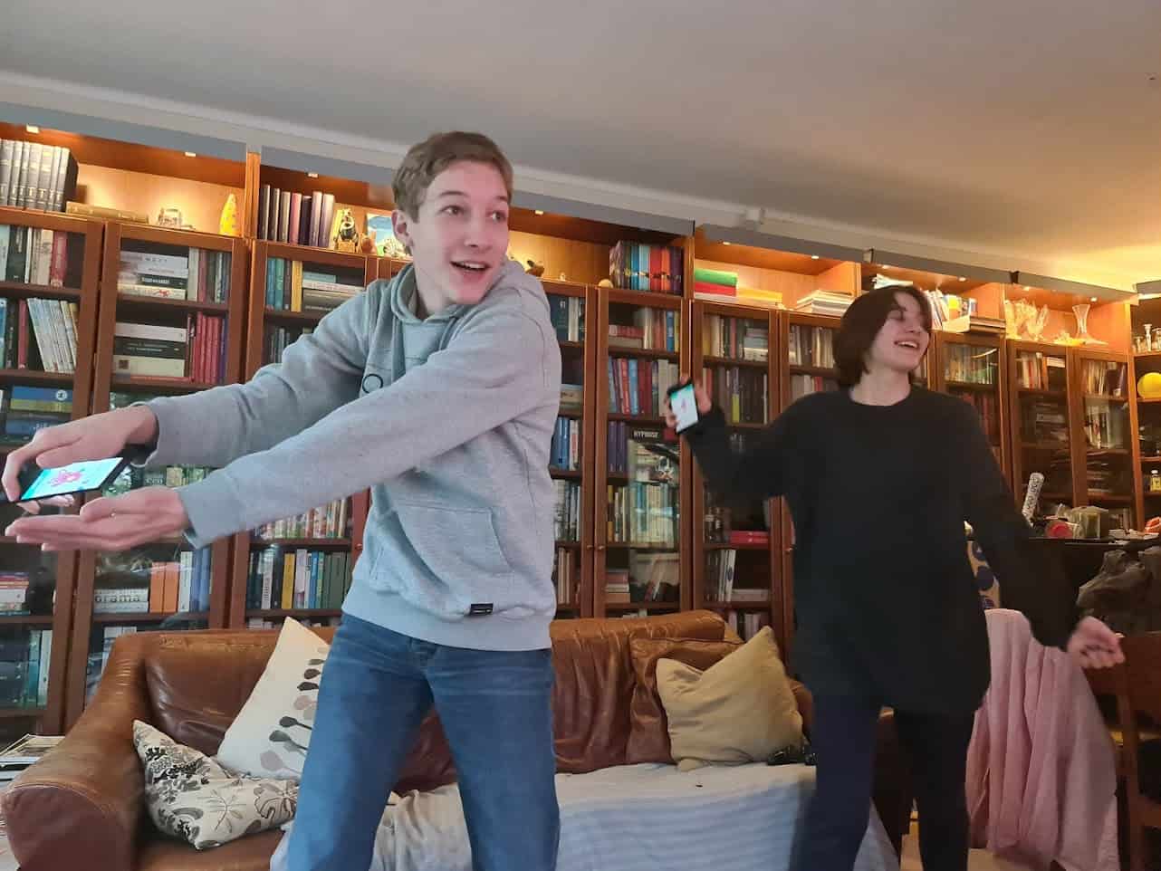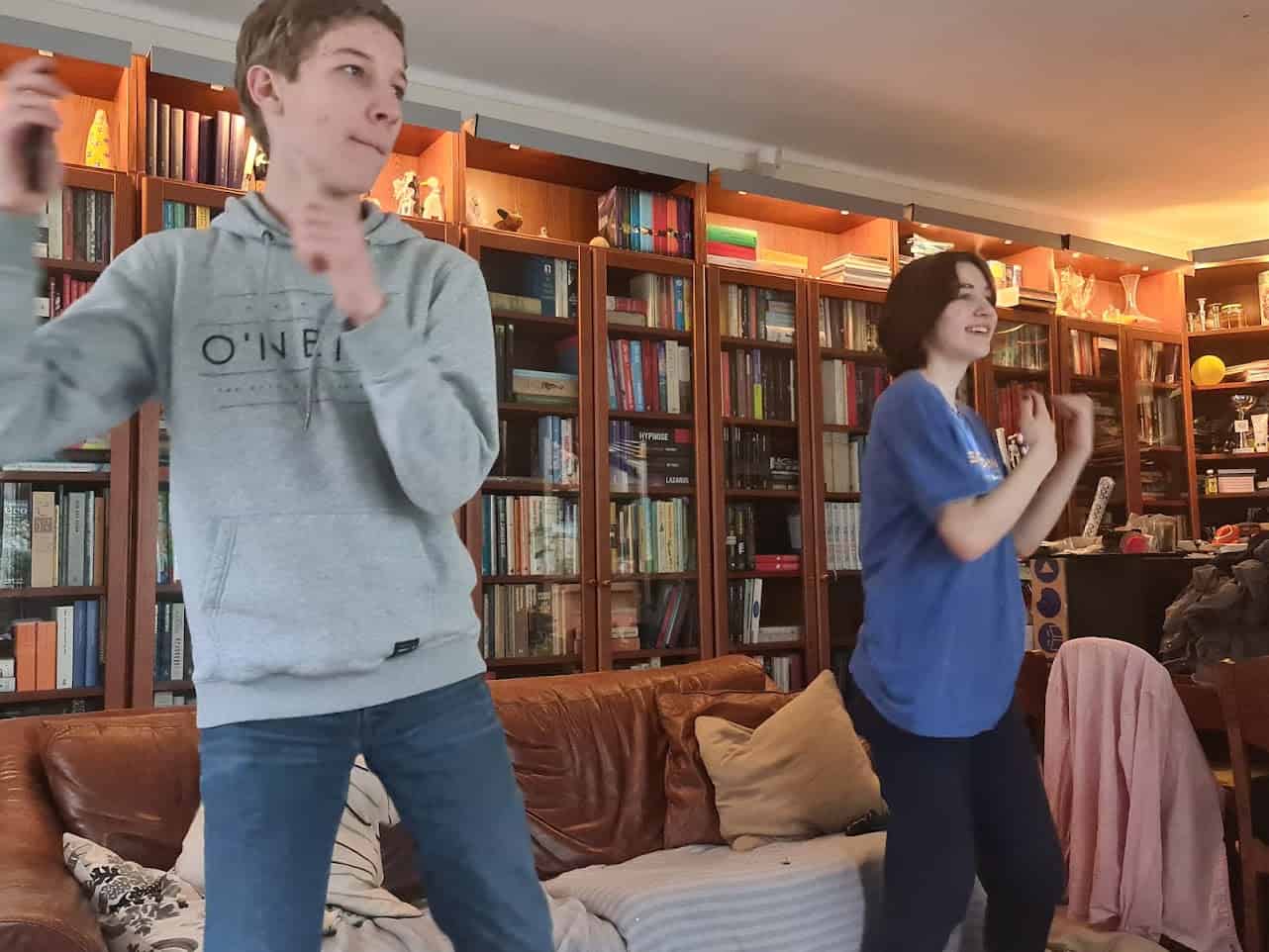 Wat voor ons nieuw is, is dat we Just Dance via de Playstation speelden, met onze mobiele telefoons als controllers. Ik moet zeggen: het werkte enorm goed. Er zijn zoveel leuke liedjes en de tweeling is echt enthousiast, zoals je op de foto’s wel kunt zien!