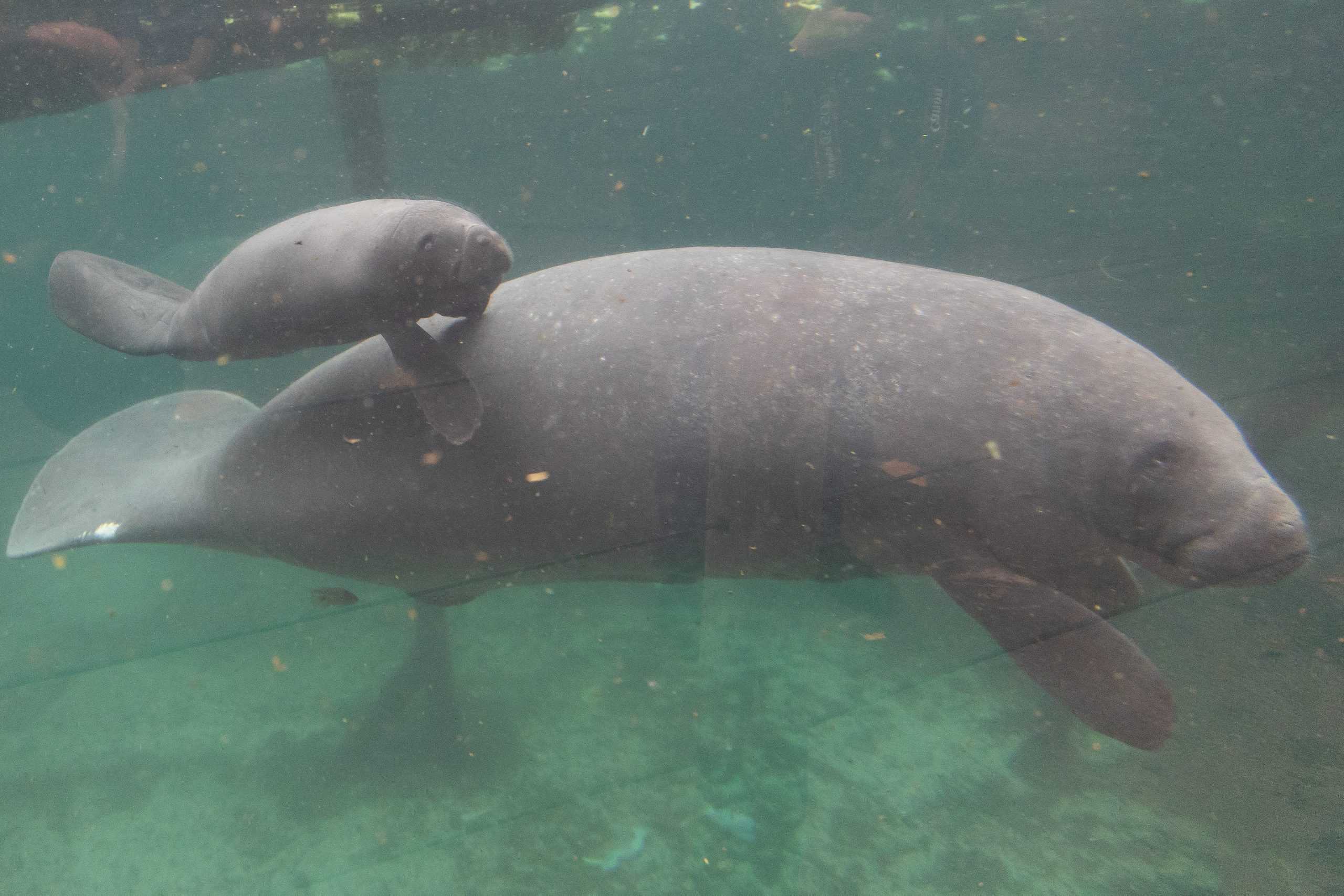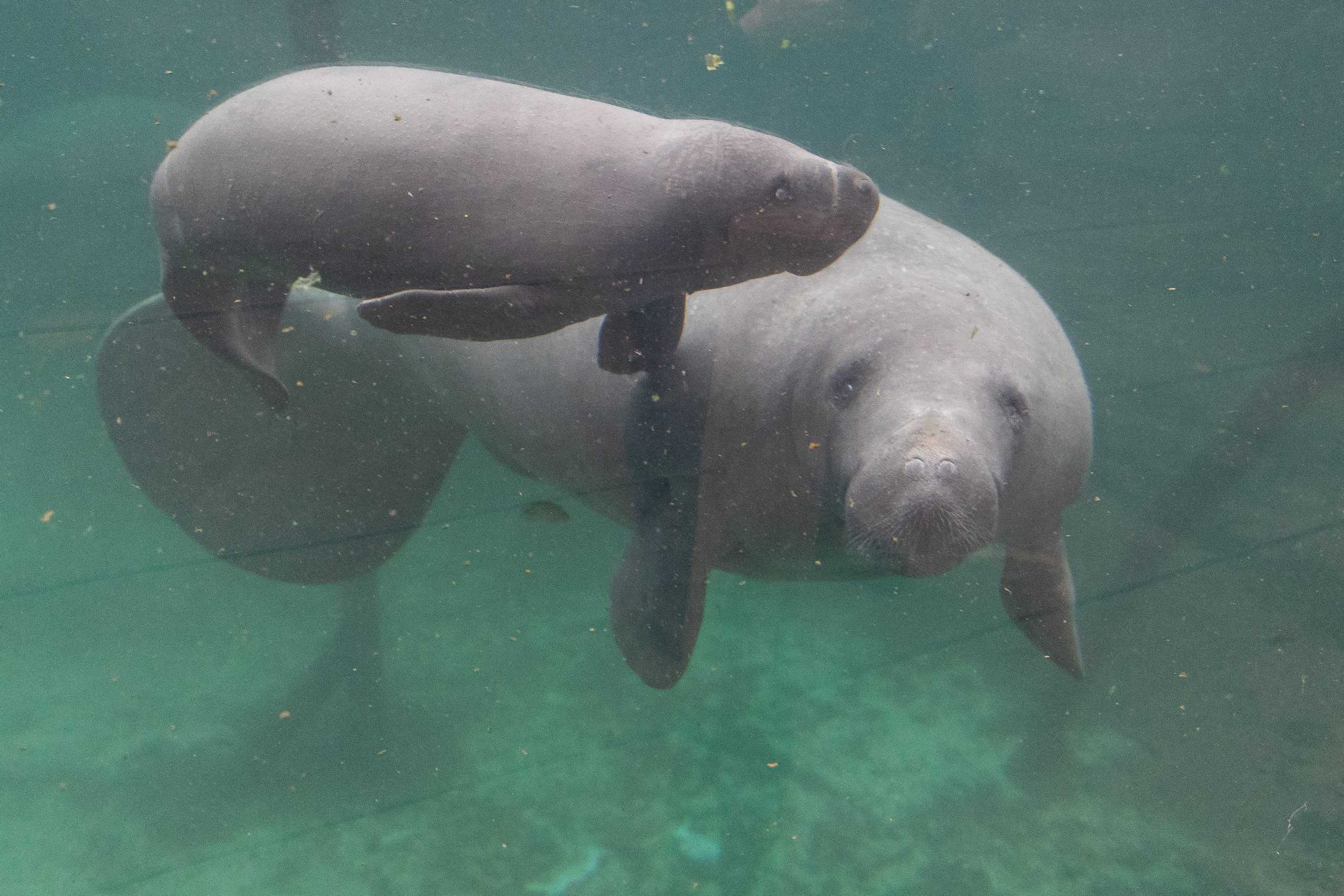Trotse Vader, Trotse Moeder en zeekoekalfje (ja, zo heet dat!) verblijven in de Mangrove in Burgers’ Zoo. We gaan graag een bezoekje brengen wanneer dat weer mogelijk is om de drie zeekoeien te bewonderen!
