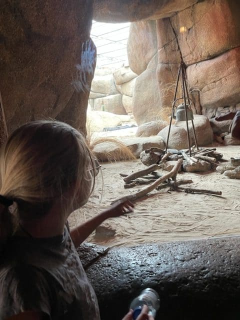 Wat we niet hadden verwacht begon Burgers’ Desert als eerst in een ondergrondse goudtunnelmijn. In Frankijk zijn we al eens in een grot geweest en de meiden herkende direct de stalagmieten en de stalagtieten. Ook kwamen we langs vleermuizen en de meiden ontdekten verschillende rotstekeningen. Heel leuk. Aan het einde van de tunnel kwamen we dan echt bij de desert.