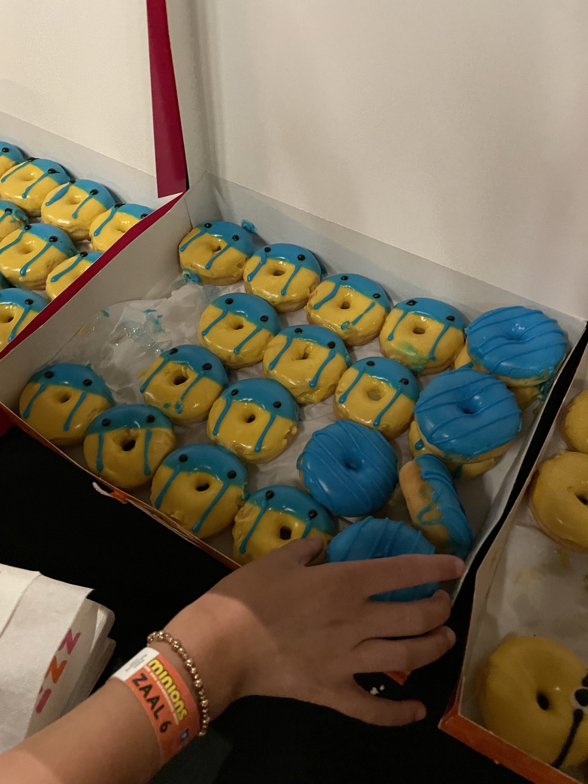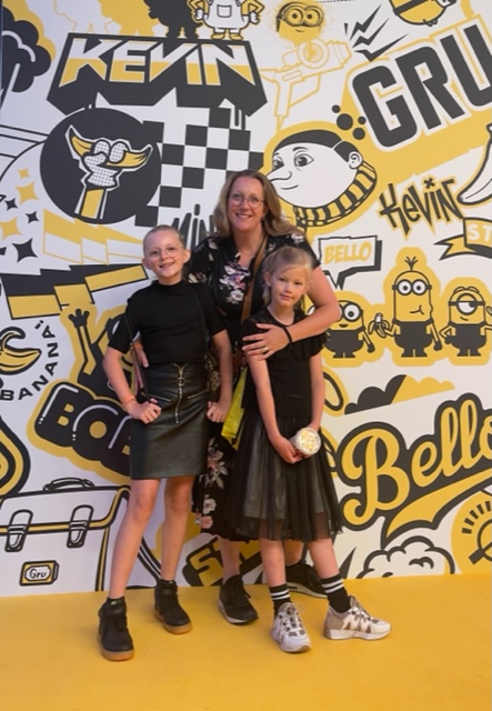 Al weken werd er thuis naar toe geleefd, een echte première, wie komen er allemaal en heel belangrijk ‘wat doen we aan?’ Zaterdagavond zijn er verschillende setjes gepast en na wikken en wegen werden de kleren voor de volgende dag klaargelegd. De volgende morgen waren we al vroeg wakker, want het was ook nog eens vaderdag!! De meiden hadden mooie knutsels gemaakt, een telefoonhouder en een ‘je hebt veel in je mars’ poster! Daarnaast nog een baardverzorgingsset, een kaasplankje en een Max Verstappen t-shirt! Dik verdiend, hij is natuurlijk de beste vader die er bestaat! Na het ontbijt hebben we snel Ollie weggebracht naar opa en oma, die kon natuurlijk niet mee. Na een uurtje rijden waren we er. De bioscoop is in de Westfield Mall of the Netherlands. Een enorm winkelcentrum waar wel 280 winkels zitten. Het winkelcentrum is indrukwekkend, voelt Amerikaans aan en zoals ze zelf pretenderen is het de Lifestyle experience van Nederland! Eenmaal bij de bioscoop aangekomen was het al druk, de eerste bekende Nederlanders en influencers zagen we al. De tweeling Mylene en Rosanne zagen de meiden direct… daar wilden ze wel mee op de foto. Eerst maar eens naar binnen…. Eenmaal binnen kwamen we al snel ‘echte’ minions tegen en enthousiast werden we begroet en mochten de meiden met ze op de foto. Hierna zijn we naar boven gegaan, daar was een groot podium waar ‘Hallo Kids radio’ stond om het publiek op te warmen. Er werden danswedstrijdjes gedaan en Diede ging helemaal los… maar er waren nog meer danstalentjes, dus tot haar teleurstelling won ze niet. Dat was al snel over toen ze ontdekte dat er donuts waren. Jummie!! Echte minions donuts in het thema… te leuk! Hierna kwamen de aanwezige stemacteurs o.a. Raymond Thiry, Edsillia Rombley en Murth Mossel op het podium. Een voor een werden ze geïnterviewd, wat ze leuk vonden aan het inspreken, of ze het moeilijk vonden, of ze leken op de personages enz. Leuk om hun verhalen te horen. Toen dat afgelopen was kregen we nog een optreden Stefania. Wat kan ze goed zingen!! Na het optreden hadden de meiden eindelijk genoeg moed verzameld om Mylene en Rosanne om een foto te vragen… Dolblij liepen we hierna naar de bioscoopzaal. Eenmaal in de zaal werden we verrast met een goodiebag op onze stoel… wat een verwennerij!! En toen begon dan de film waarvoor de gekomen waren. Ik moet bekennen dat als enige van de familie geen Minions fan ben. Sebastiaan en de meiden vonden de vorige films al superleuk. Maar ik moet eerlijk bekennen, ik heb hardop gelachen bij de film. Er zit echt genoeg humor in om als volwassenen de hele film te bekijken (en niet afgeleid te raken). En niet alleen ik, Sebastiaan en de meiden hebben genoten. Met regelmaat hoorde ik de hele zaal in lachen uitbarsten, groot en klein, iedereen vermaakte zich! Ik wil niet teveel verklappen over de film, want je moet hem echt zelf gaan bekijken… maar in het kort zie hoe de 12 jarige GRU zijn Minions ontmoet en samen met hen plannen smeedt om de wereld te veroveren. Als er een plekje vrij komt in de grootste schurkenbende wil GRU daar graag bij aansluiten… maar of dat nu goed gaat? Heb je zin om als gezin een vrolijke, humoristische, feelgood film te bekijken? Ga dan zeker naar deze toe!! Moe, maar voldaan zijn we terug naar huis gereden… eenmaal in bed vroegen de meiden…. Mogen we volgende week weer naar een première? Volgens mij was het een geslaagde dag ?