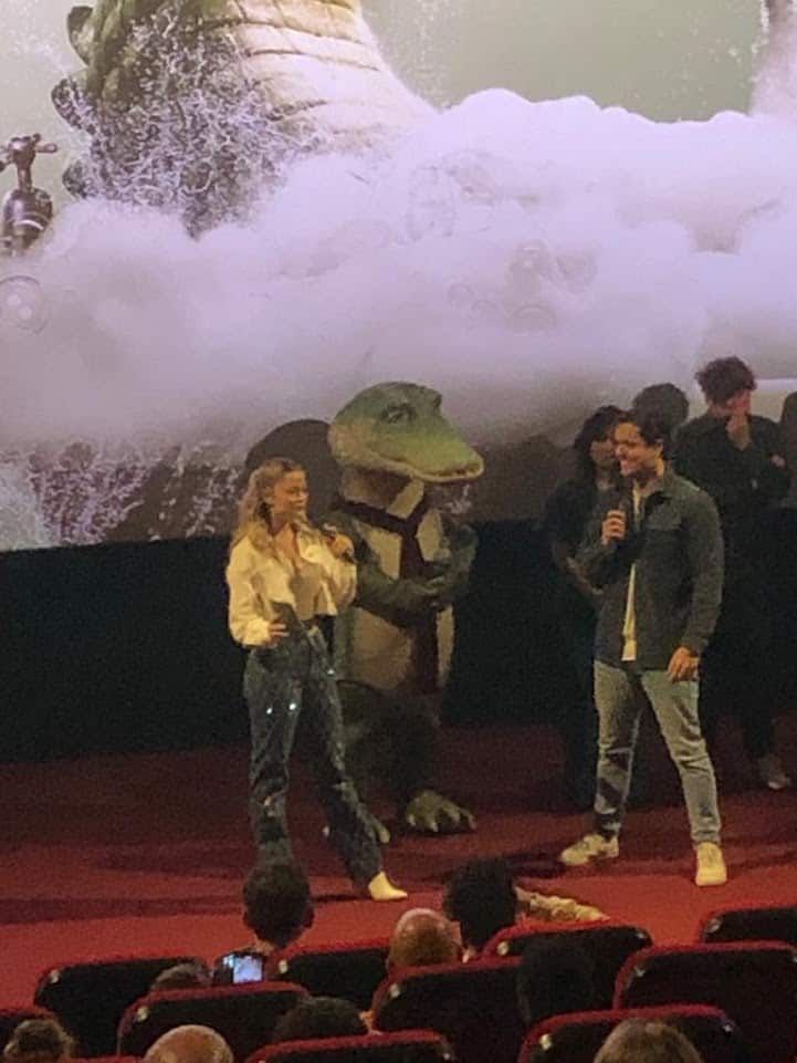 Linde krijgt de smaak te pakken en scoort nog twee handtekeningen en foto’s op de groene loper en dan gaan we de bioscoopzaal in. Op alle bioscoopstoelen ligt een tasje met lekkere en leuke inhoud erin. Wat een verwennerij. Voordat de film begint komt Stefania oplopen en zij stelt de hele stemmencast voor aan het publiek. Super leuk om ze zo allemaal even te horen spreken over de film en hoe het was om de stemmen in te spreken en te zingen. Want Wil de krokodil zingt in plaats van dat hij praat. Soy Kroon heeft alles ingezongen en dat klinkt heel gaaf.