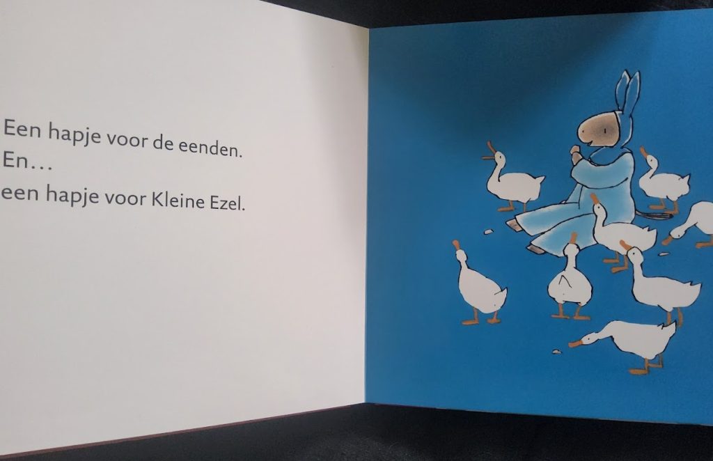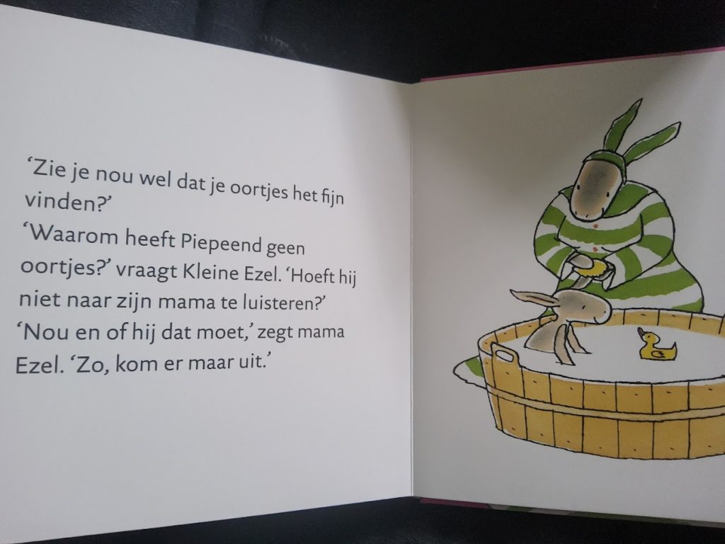 Je allereerste verhalen van Kleine Ezel is uitgegeven door uitgeverij Leopold als kartonboek van 46 pagina’s met padded cover (voelt lekker zacht en “indrukbaar” aan). Het is geschreven door Rindert Kromhout.