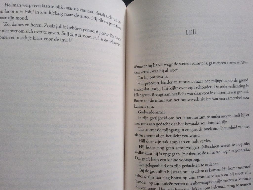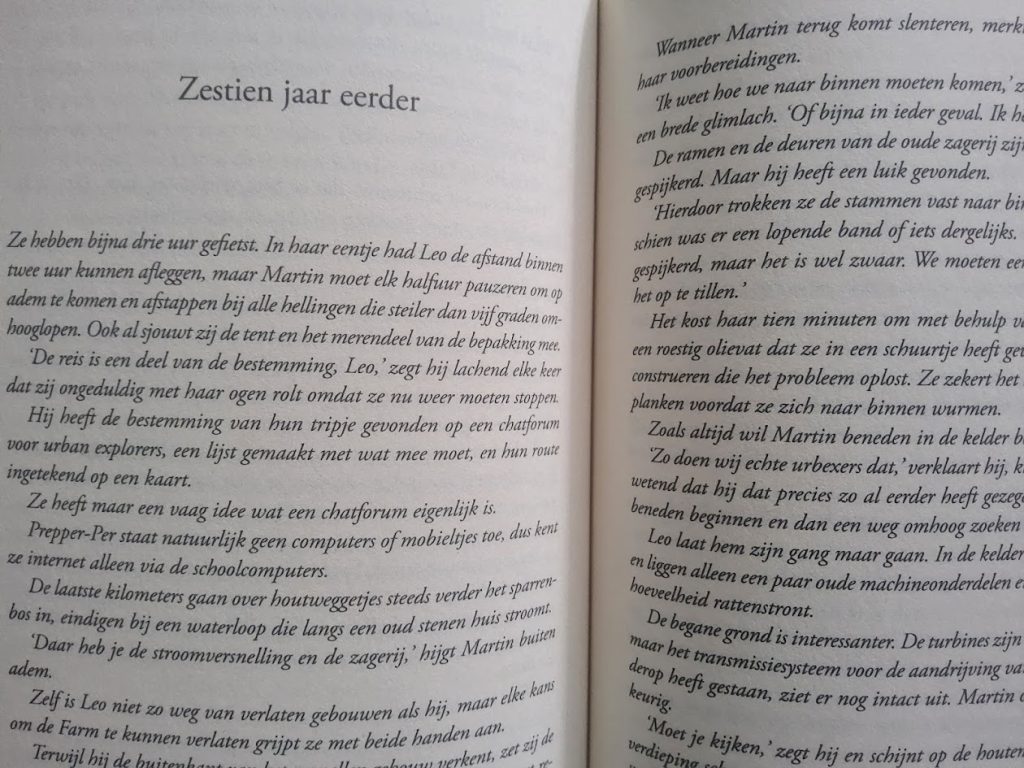 De hoofdstukken zijn genoemd naar het personage waar het in dat stuk over gaat. Zo krijg je van verschillende kanten een deel van het verhaal en soms ook stukken uit het verleden waardoor je een nog beter beeld krijgt. Ik vind dat erg prettig om te lezen, soms “frustrerend” omdat je dan net in een spannend stuk zit en overgaat naar een ander persoon. Dat nodigt in ieder geval uit tot verder lezen! Ook Urban Exploring komt weer voor in het boek wat ik erg origineel vind.