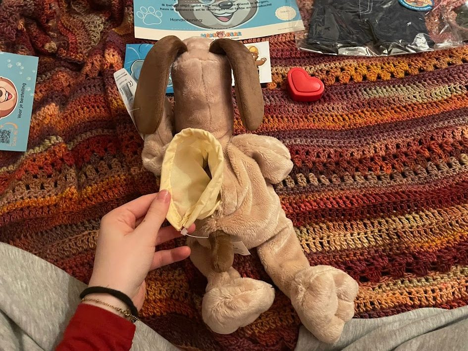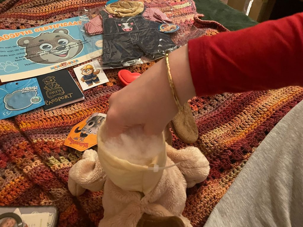Het was erg makkelijk in elkaar te zetten: Eerst vul je je knuffel op totdat je hem zacht genoeg vind. Je krijgt ook een geur hartje dat je er in kan stoppen en dan ruikt je knuffel lekker! Dan pak je het hartje waarin je je stembericht gaat inspreken, je hebt hier gelukkig meerdere kansen voor dus je kan doorgaan tot je het perfect vindt!